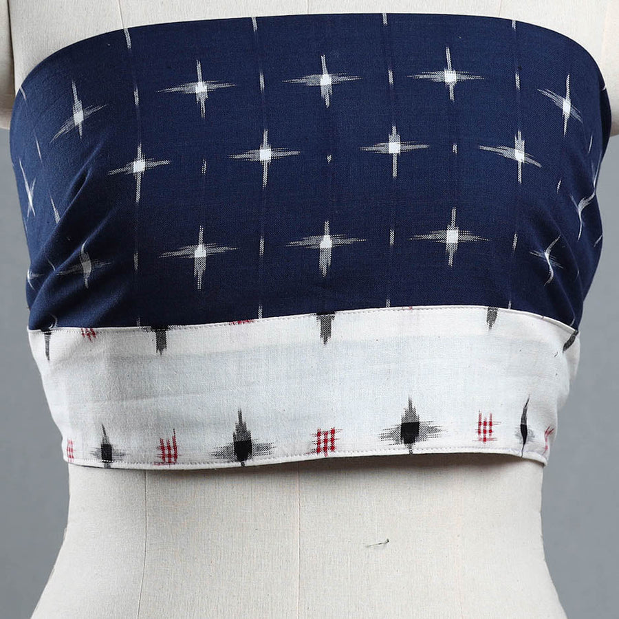 Elevate your style with this blue cotton pochampally ikat blouse piece. This blouse material is perfect to pair with any saree, adding a touch of elegance to your ensemble. Soft, breathable, and versatile, it celebrates traditional craftsmanship while ensuring comfort.