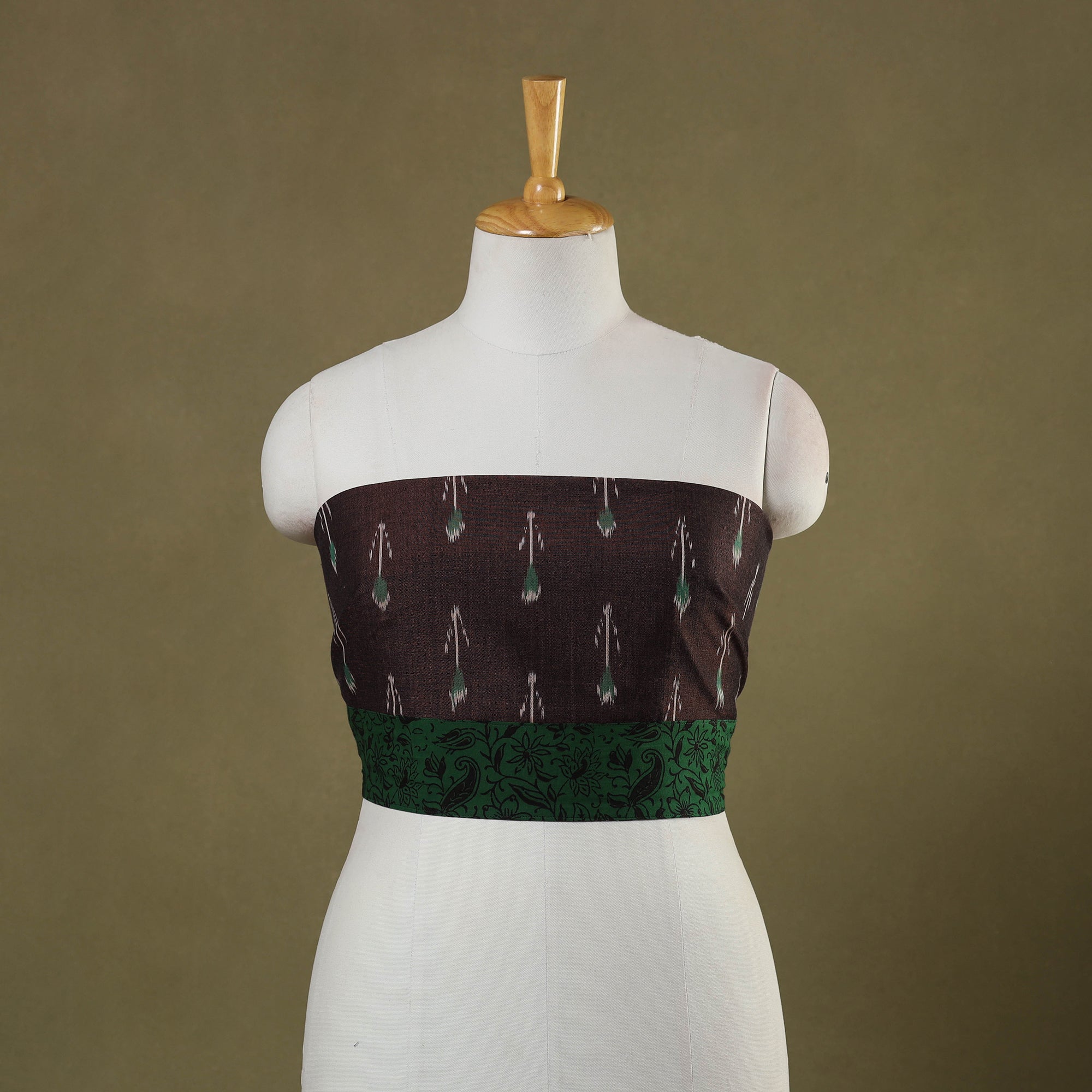 This brown handcrafted blouse piece, made from cotton fabric, features a pochampally Ikat weave, offering a beautiful blend of traditional artistry and everyday comfort. Ideal for pairing with sarees, it’s perfect for creating stylish blouses for both casual and festive occasions.