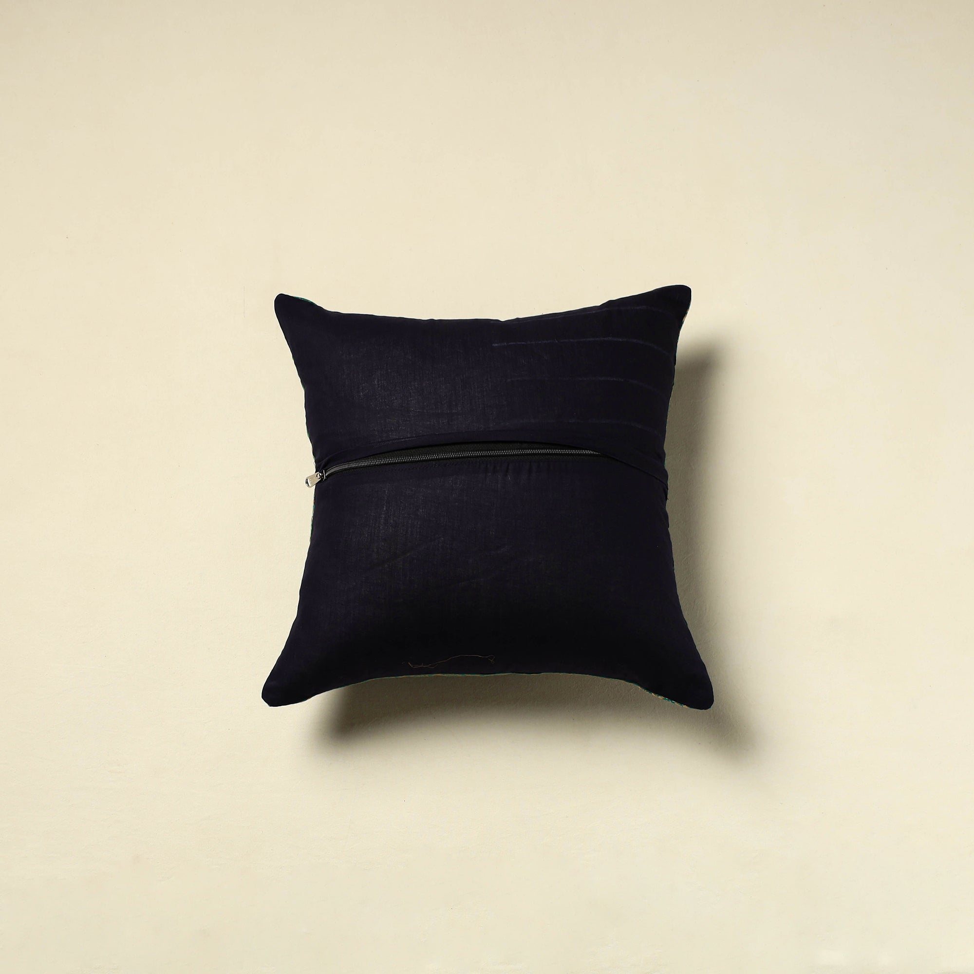 Add a touch of tradition to your home with this blue cotton pochampally Ikat cushion cover. It showcases geometric patterns created using age-old Ikat resist-dyeing techniques. Soft and comfortable, it's perfect for your sofa, bed, or reading nook.