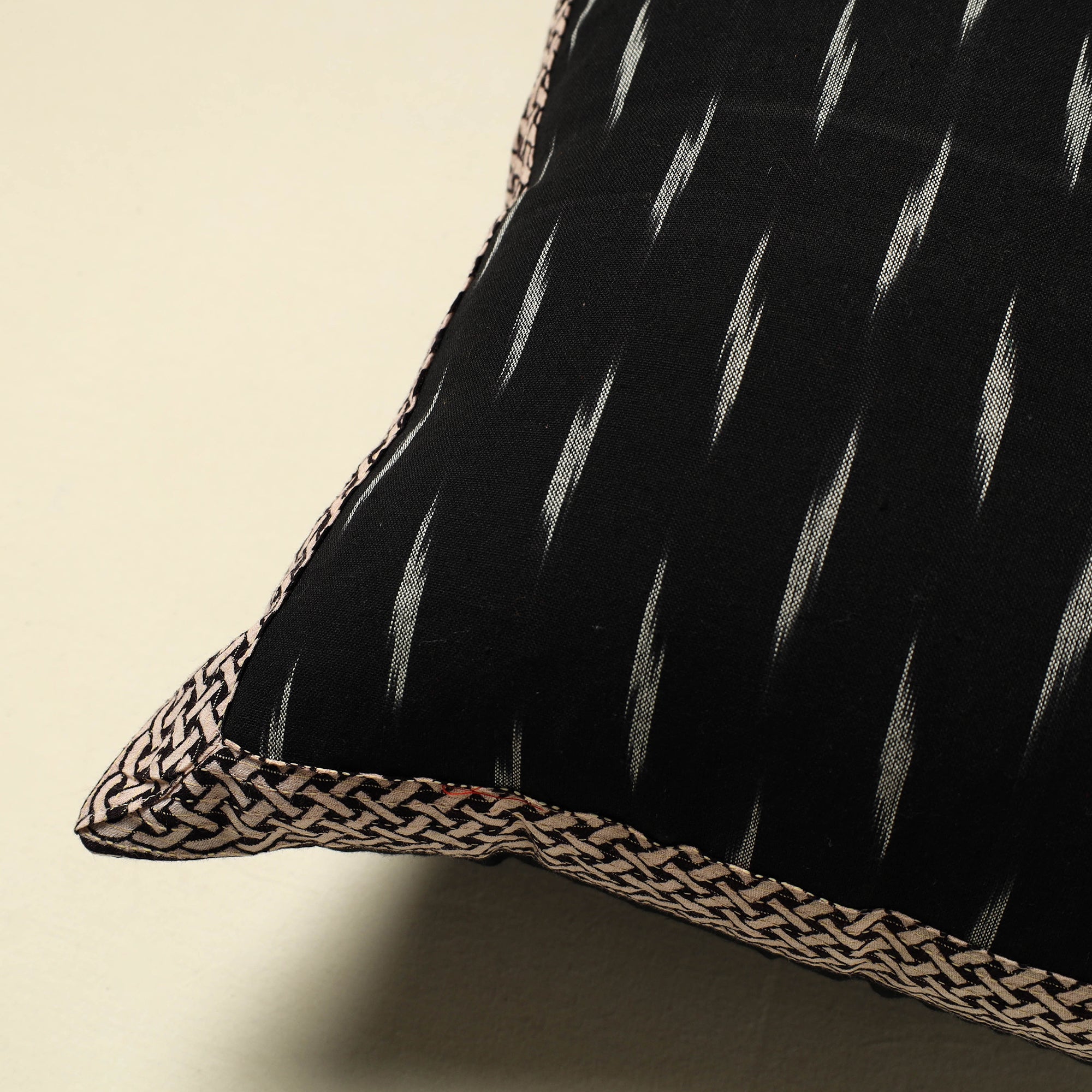 Add a touch of tradition to your home with this black cotton pochampally Ikat cushion cover. It showcases geometric patterns created using age-old Ikat resist-dyeing techniques. Soft and comfortable, it's perfect for your sofa, bed, or reading nook.