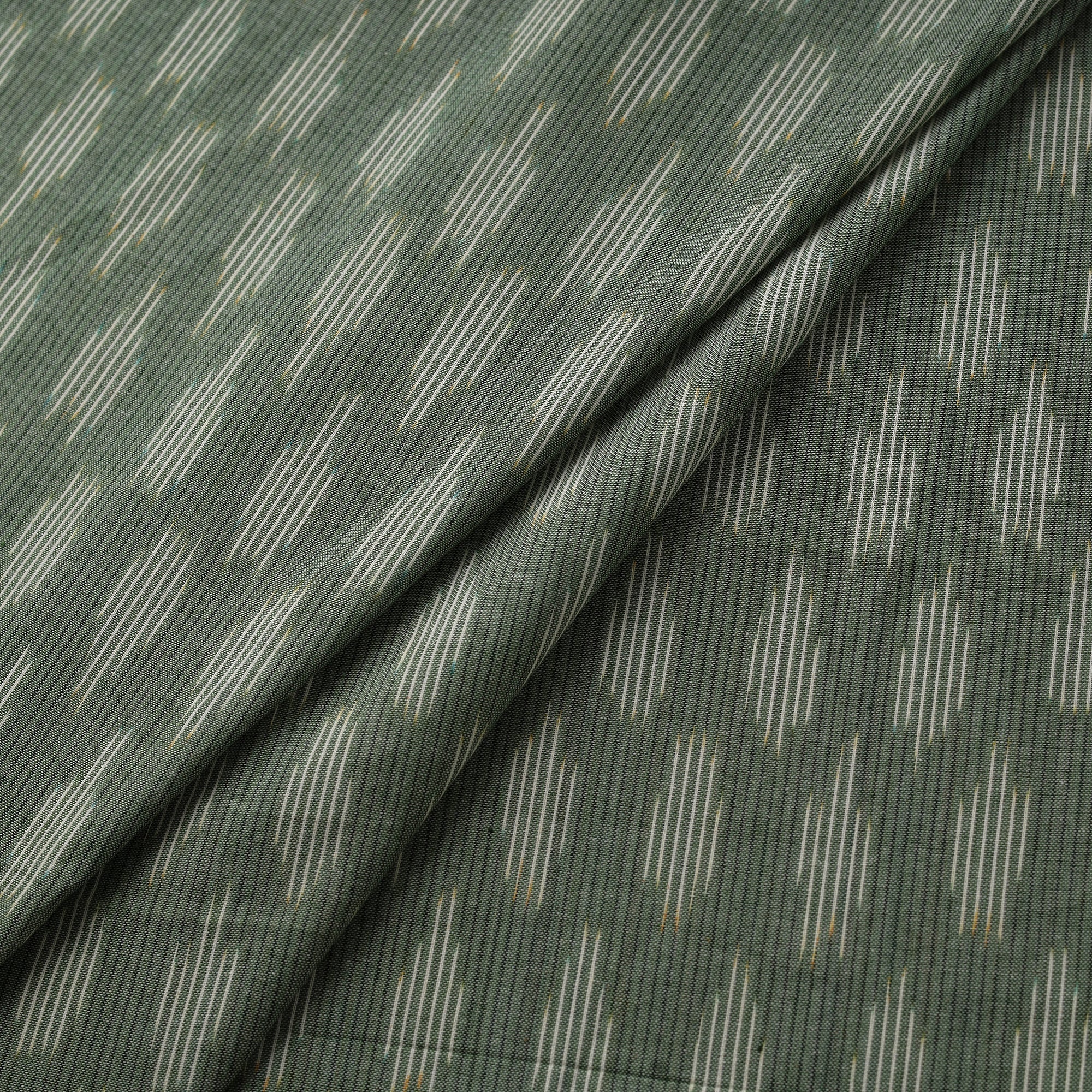 Green pure cotton pochampally ikat fabric from Telangana reflects India’s rich weaving tradition. Created using the Ikat resist-dye technique, where the warp and weft yarns are carefully dyed before weaving, this fabric is ideal for garments as well as creating home decor pieces.