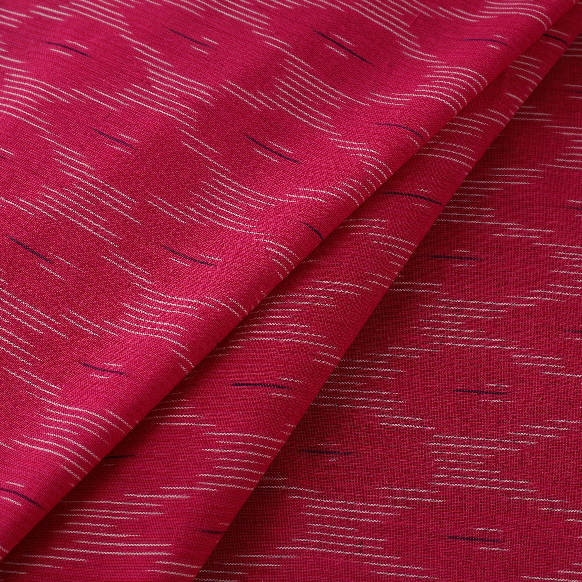 This pink cotton pochampally Ikat fabric is a traditional weave from Telangana, known for its precision and vibrant patterns. The designs are crafted using a resist dyeing technique where threads are dyed before weaving, resulting in striking geometric motifs. Appreciated for its rich texture, this fabric is ideal for ethnic wear, home décor, or creative sewing projects.