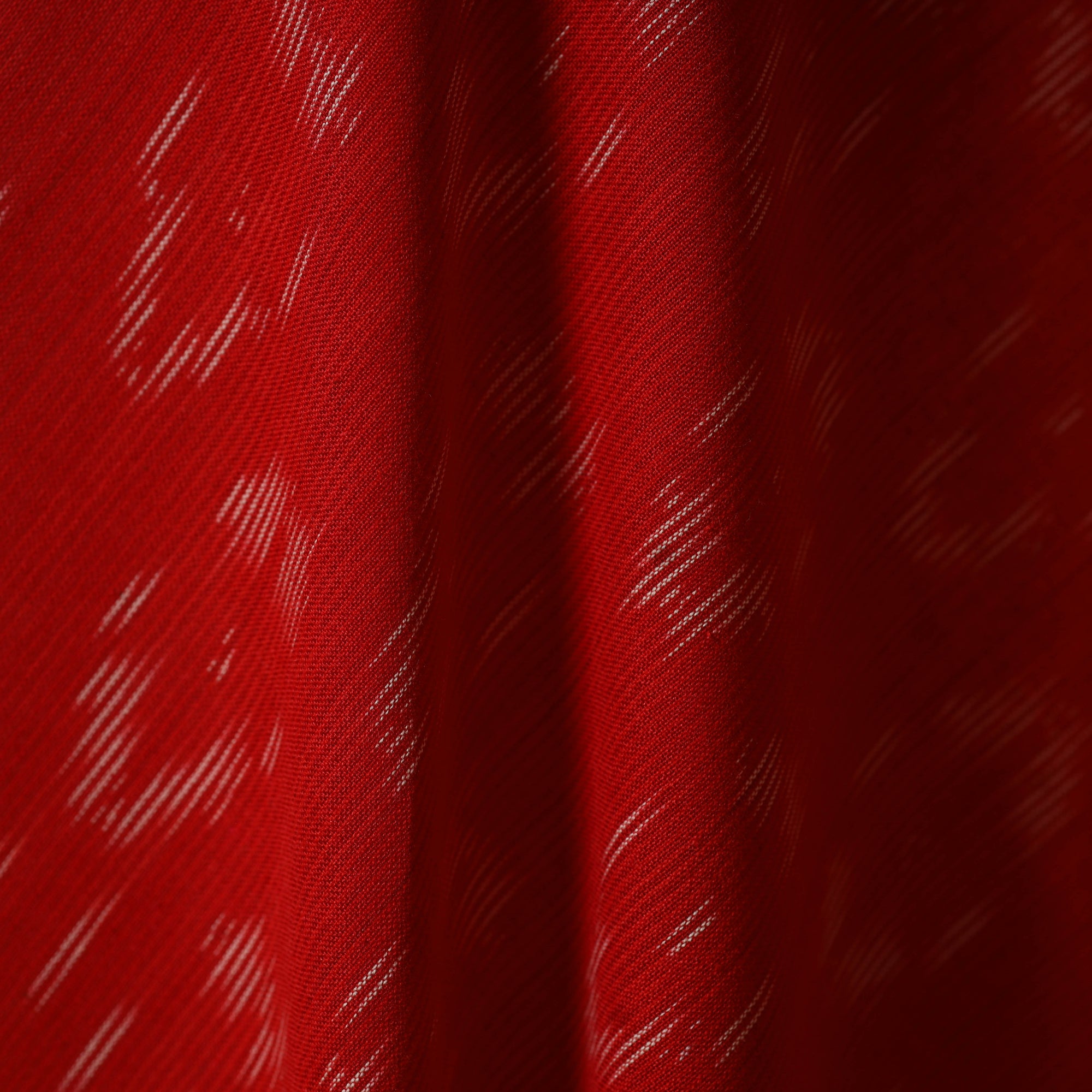 Fine quality red pochampally ikat cotton fabric from Telangana. Ikat is a unique dyeing technique that uses a resist process, similar to tie-dye, applied on either the warp or weft threads before weaving. It features striking patterns and is world-famous for its vibrant colors, distinctive texture and intricate designs. Ideal for creating kurtas, dresses, tunics or decorative home accents. This is a power loom fabric, crafted using the traditional hand tie-dye method.