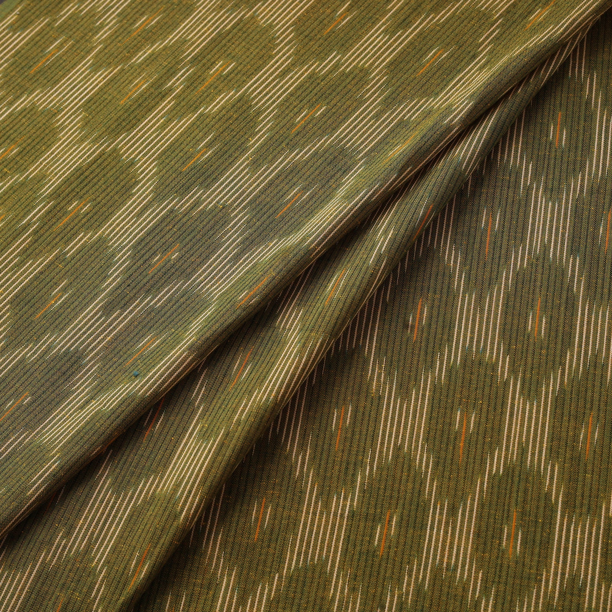 Green - Handloom Raw Silk Pochampally Ikat Fabric 01