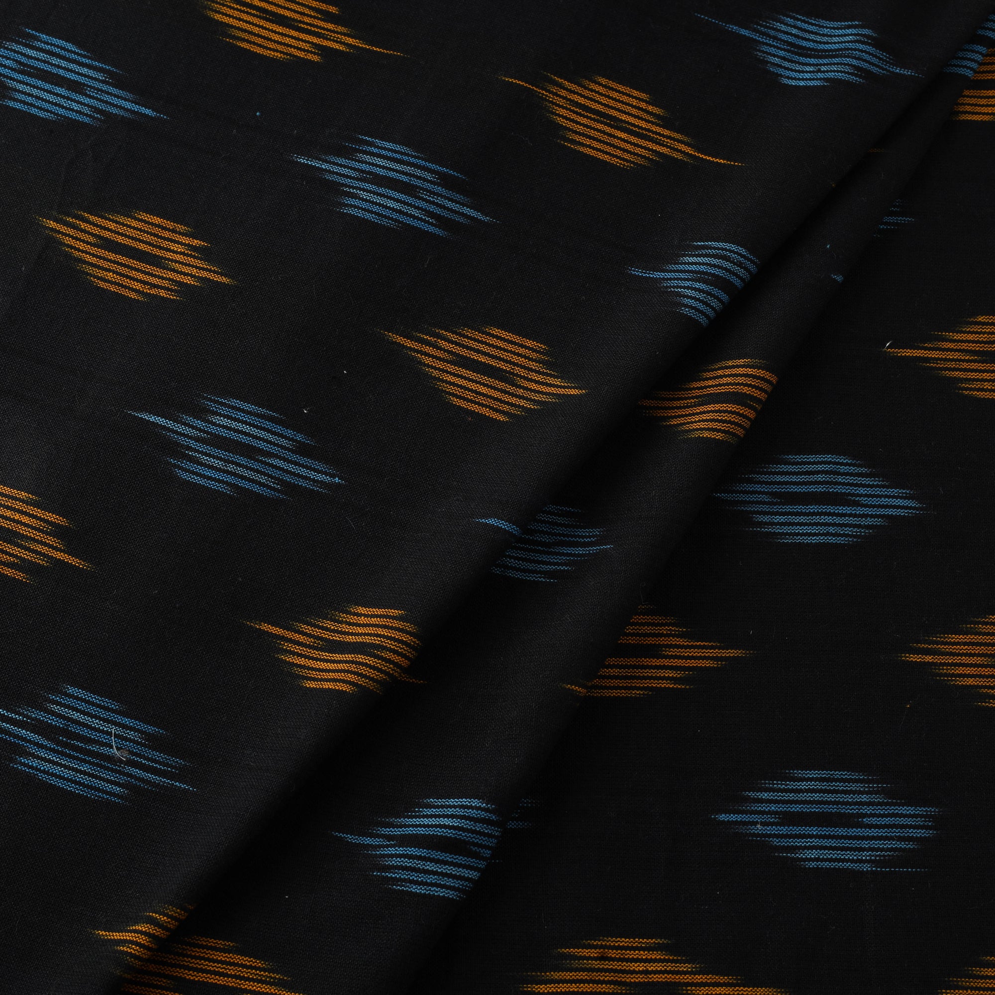 Fine quality black pochampally Ikat cotton fabric from Telangana. Ikat is a unique dyeing technique that uses a resist process, similar to tie-dye, applied on either the warp or weft threads before weaving. It features striking patterns and is world-famous for its vibrant colors, distinctive texture, and intricate designs. Ideal for creating kurtas, dresses, tunics, or decorative home accents. This is a power loom fabric, crafted using the traditional hand tie-dye method.