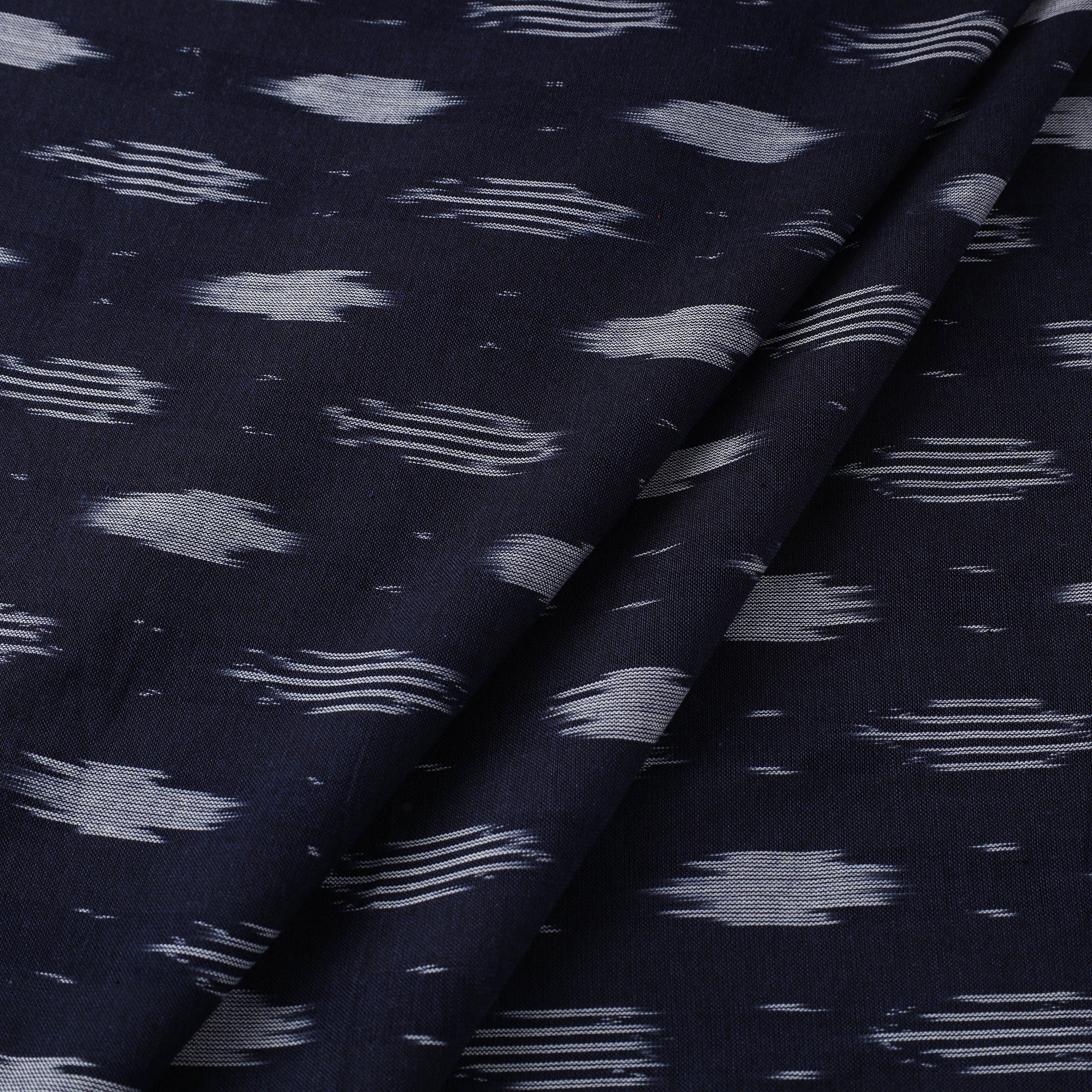 This blue cotton pochampally Ikat fabric is a traditional weave from Telangana, known for its precision and vibrant patterns. The designs are crafted using a resist dyeing technique where threads are dyed before weaving, resulting in striking geometric motifs. Appreciated for its rich texture, this fabric is ideal for ethnic wear, home décor, or creative sewing projects.