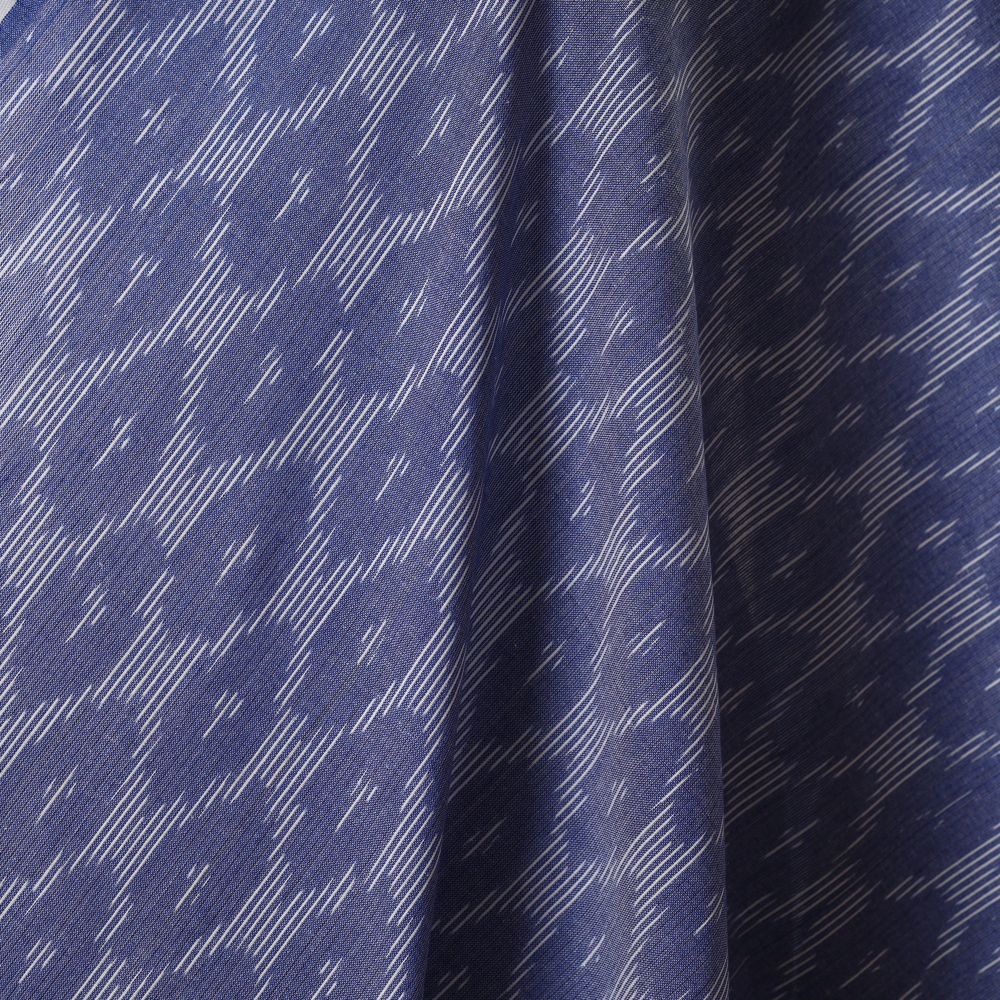 Fine quality blue pochampally Ikat cotton fabric from Telangana. Ikat is a unique dyeing technique that uses a resist process, similar to tie-dye, applied on either the warp or weft threads before weaving. It features striking patterns and is world-famous for its vibrant colors, distinctive texture, and intricate designs. Ideal for creating kurtas, dresses, tunics, or decorative home accents. This is a power loom fabric, crafted using the traditional hand tie-dye method.
