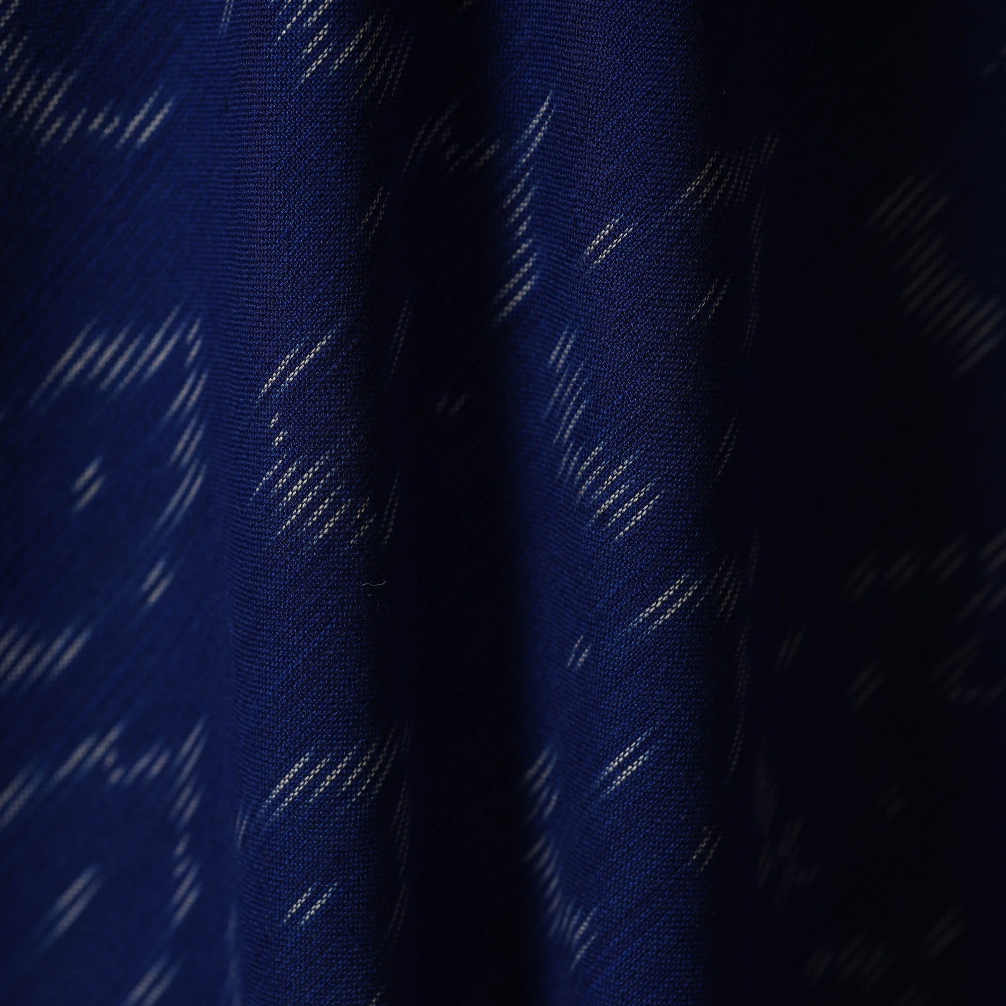 Fine quality blue pochampally ikat cotton fabric from Telangana. Ikat is a unique dyeing technique that uses a resist process, similar to tie-dye, applied on either the warp or weft threads before weaving. It features striking patterns and is world-famous for its vibrant colors, distinctive texture and intricate designs. Ideal for creating kurtas, dresses, tunics or decorative home accents. This is a power loom fabric, crafted using the traditional hand tie-dye method.