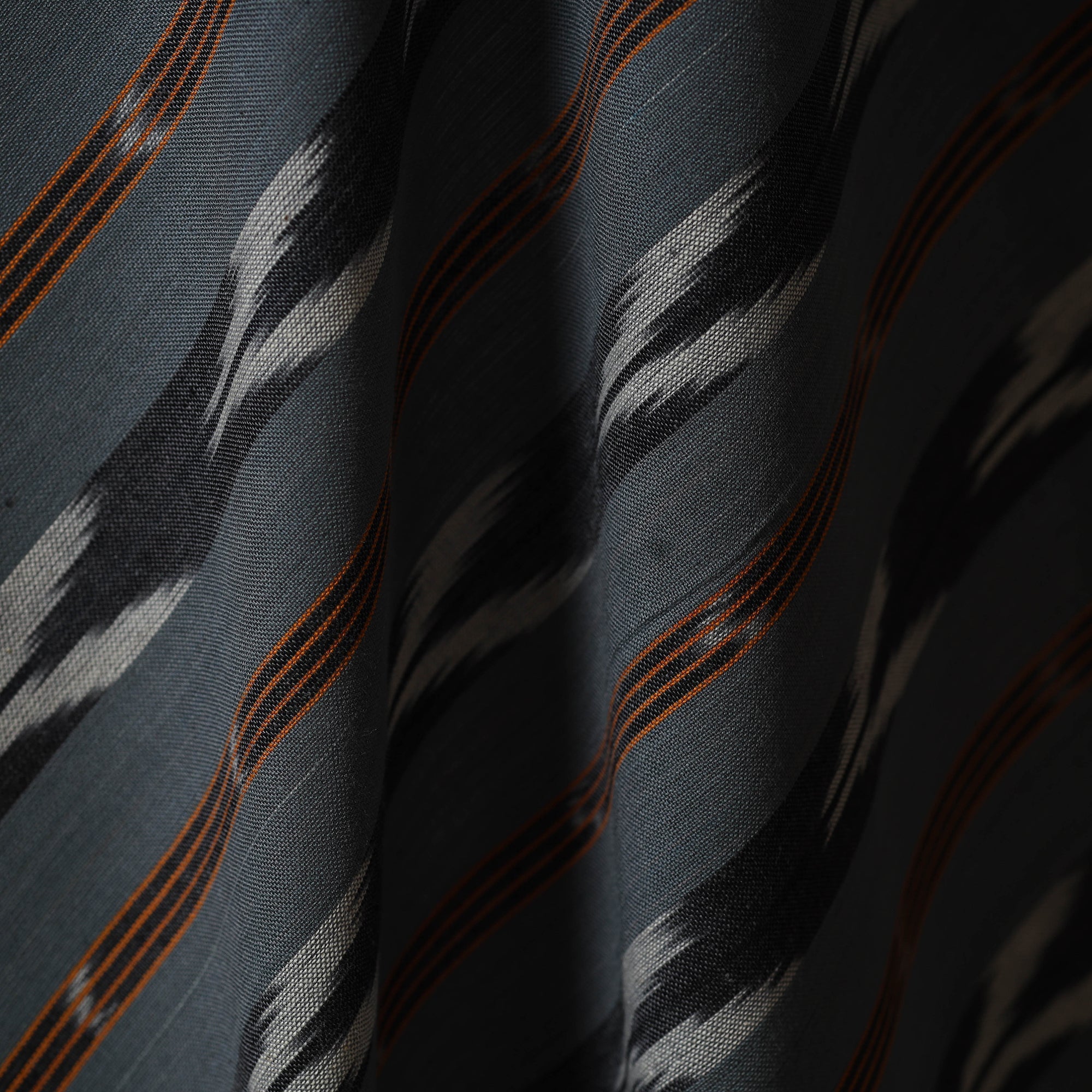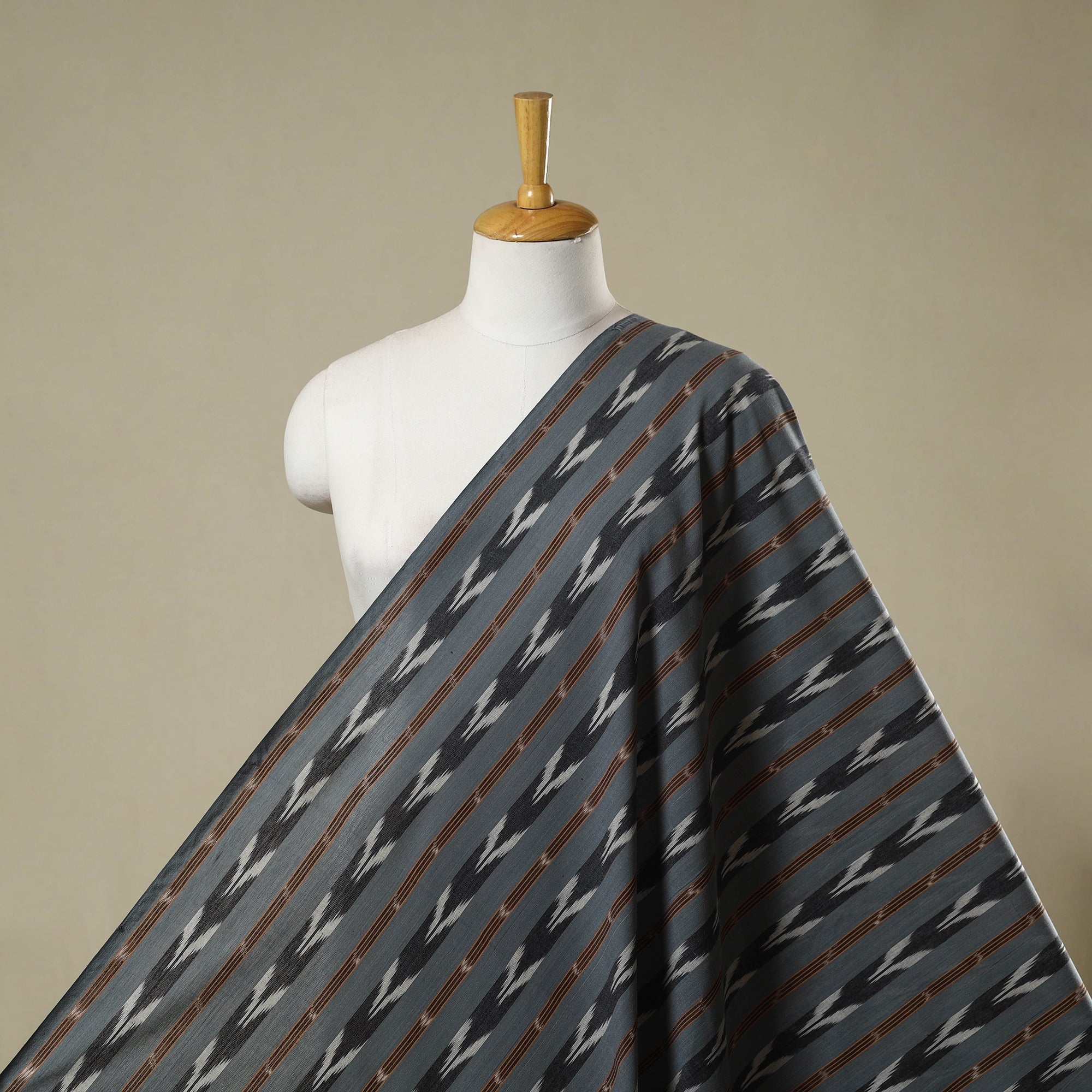 Fine quality grey pochampally ikat cotton fabric from Telangana. Ikat is a unique dyeing technique that uses a resist process, similar to tie-dye, applied on either the warp or weft threads before weaving. It features striking patterns and is world-famous for its vibrant colors, distinctive texture and intricate designs. Ideal for creating kurtas, dresses, tunics or decorative home accents. This is a power loom fabric, crafted using the traditional hand tie-dye method.
