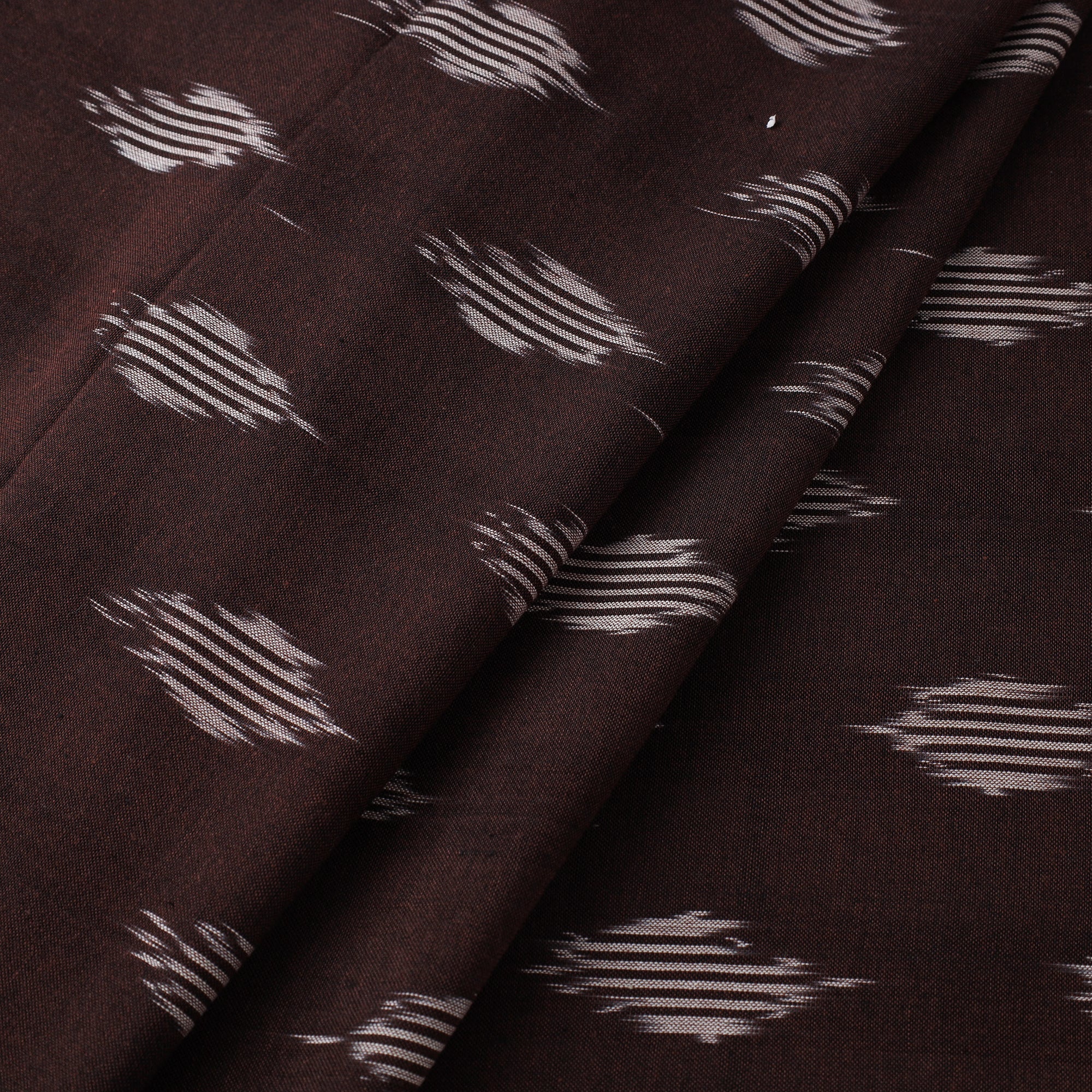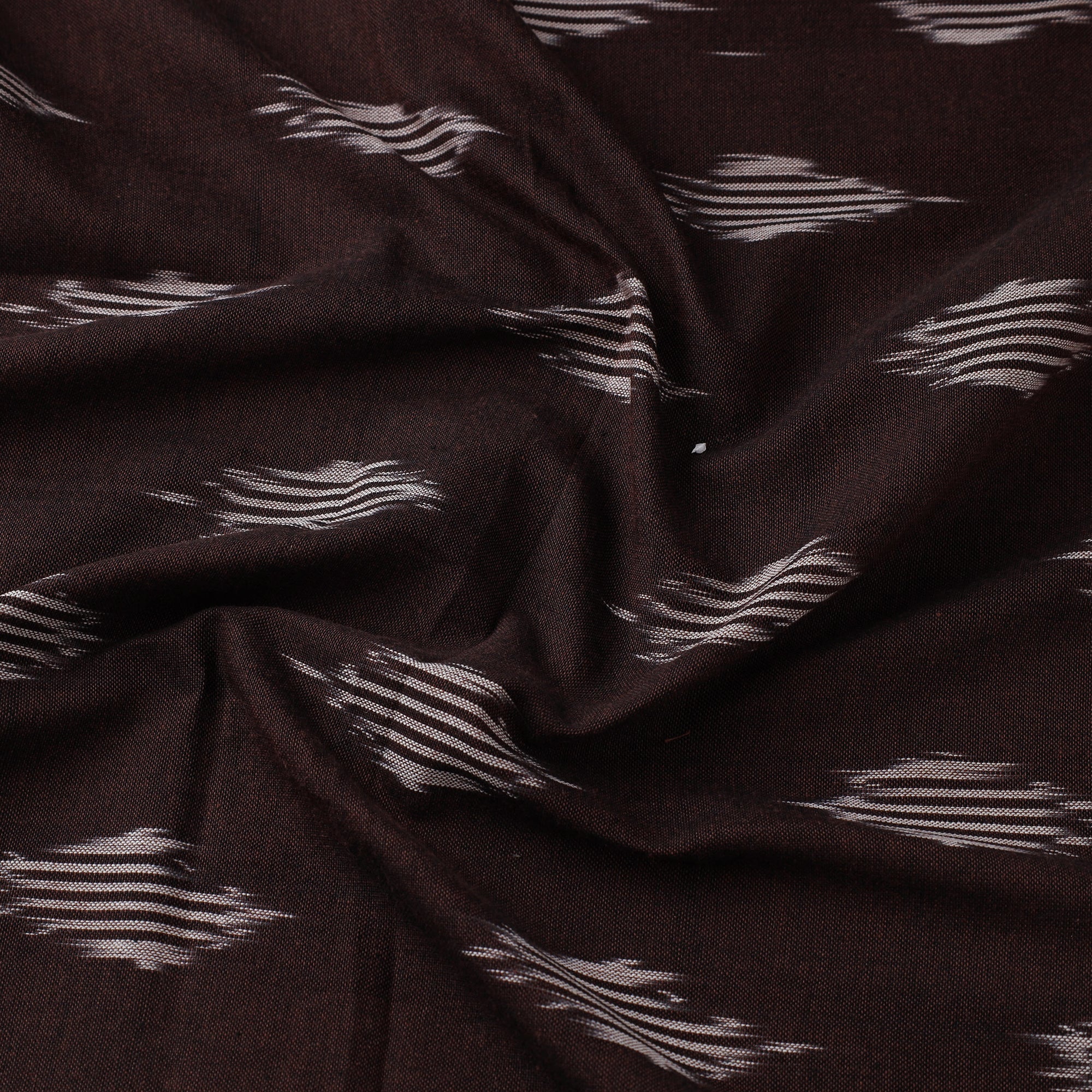 This brown cotton pochampally Ikat fabric is a traditional weave from Telangana, known for its precision and vibrant patterns. The designs are crafted using a resist dyeing technique where threads are dyed before weaving, resulting in striking geometric motifs. Appreciated for its rich texture, this fabric is ideal for ethnic wear, home décor, or creative sewing projects.