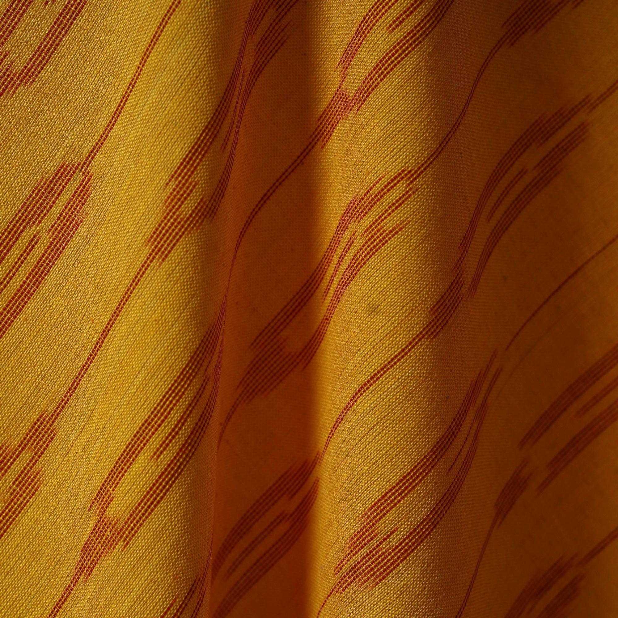 Fine quality yellow pochampally ikat cotton fabric from Telangana. Ikat is a unique dyeing technique that uses a resist process, similar to tie-dye, applied on either the warp or weft threads before weaving. It features striking patterns and is world-famous for its vibrant colors, distinctive texture and intricate designs. Ideal for creating kurtas, dresses, tunics or decorative home accents. This is a power loom fabric, crafted using the traditional hand tie-dye method.