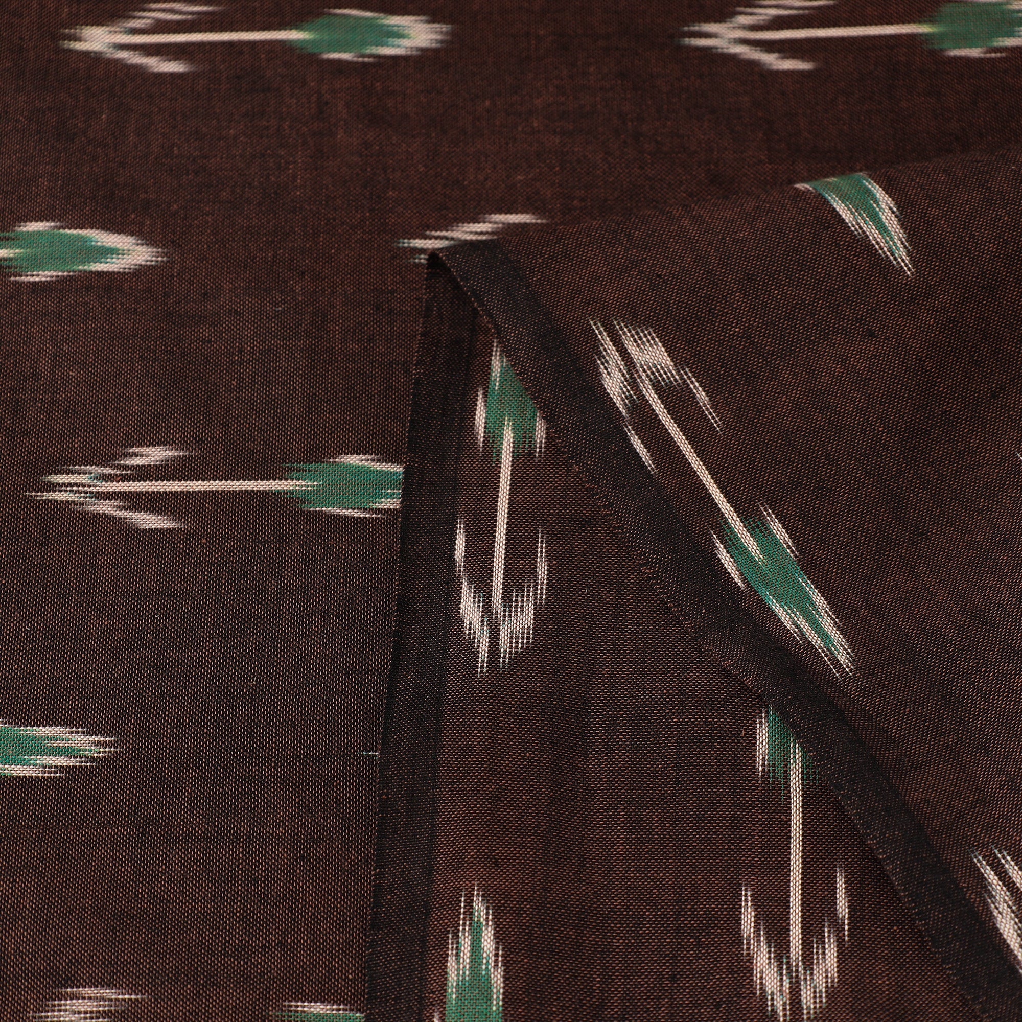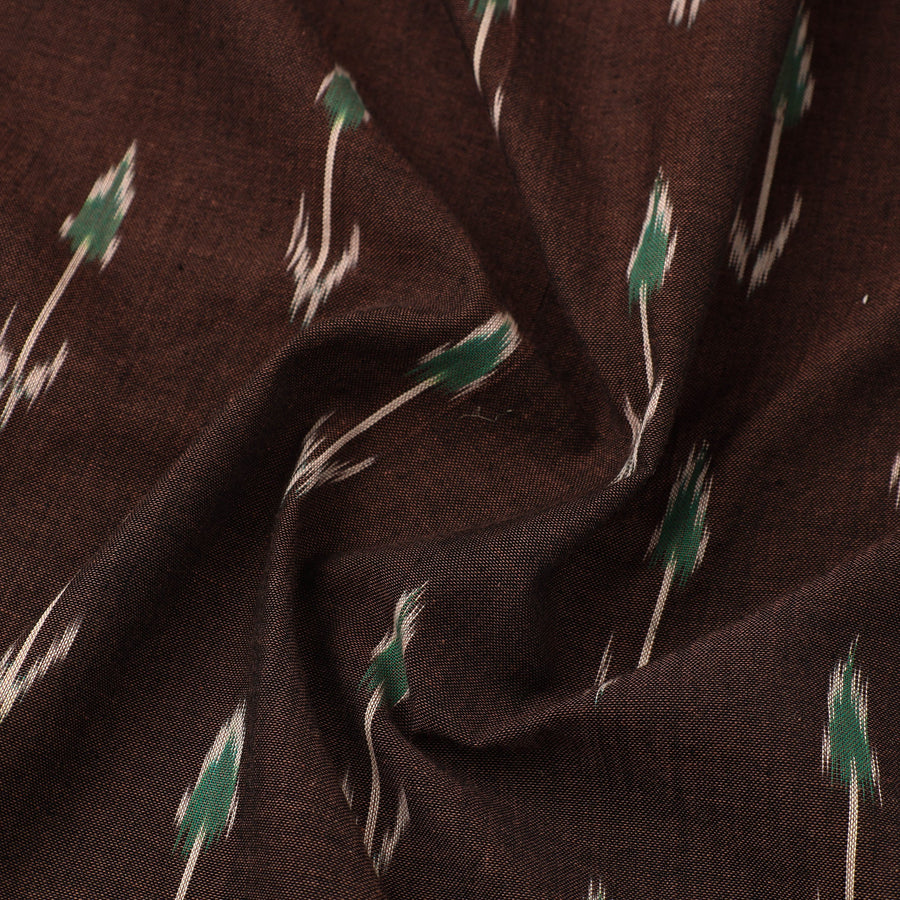 Fine quality cotton brown pochampally ikat fabric from Ramannapeta, Telangana. Ikat (Ikkat) is a dyeing technique used to pattern textiles that employs a resist dyeing process similar to tie-dye on either the warp or weft fibers prior to dyeing. Ikat has lovely patterns and are world famous for their extremely beautiful colors, texture and designs. Perfect for both traditional and modern projects.