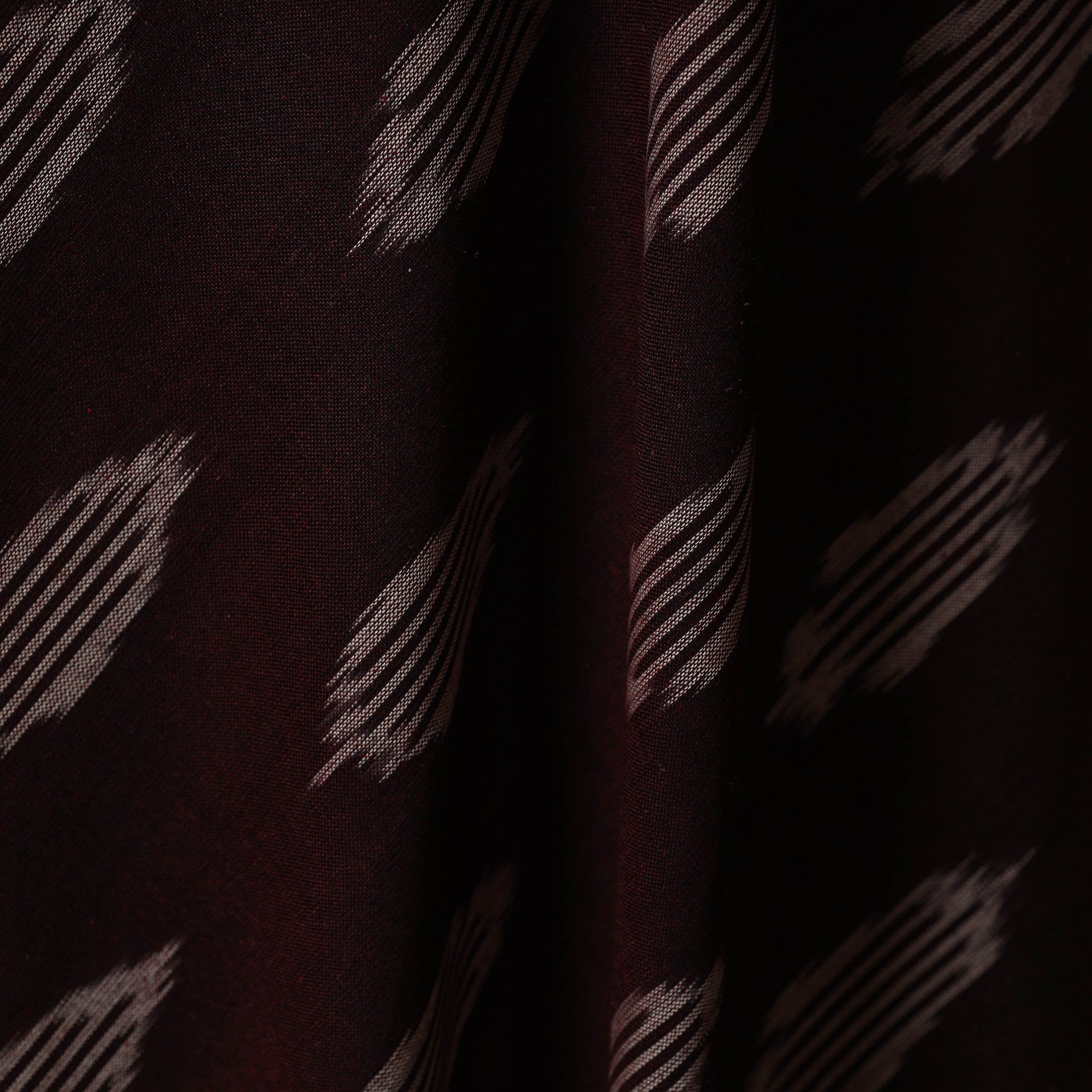 Fine quality brown pochampally ikat cotton fabric from Telangana. Ikat is a unique dyeing technique that uses a resist process, similar to tie-dye, applied on either the warp or weft threads before weaving. It features striking patterns and is world-famous for its vibrant colors, distinctive texture and intricate designs. Ideal for creating kurtas, dresses, tunics or decorative home accents. This is a power loom fabric, crafted using the traditional hand tie-dye method.