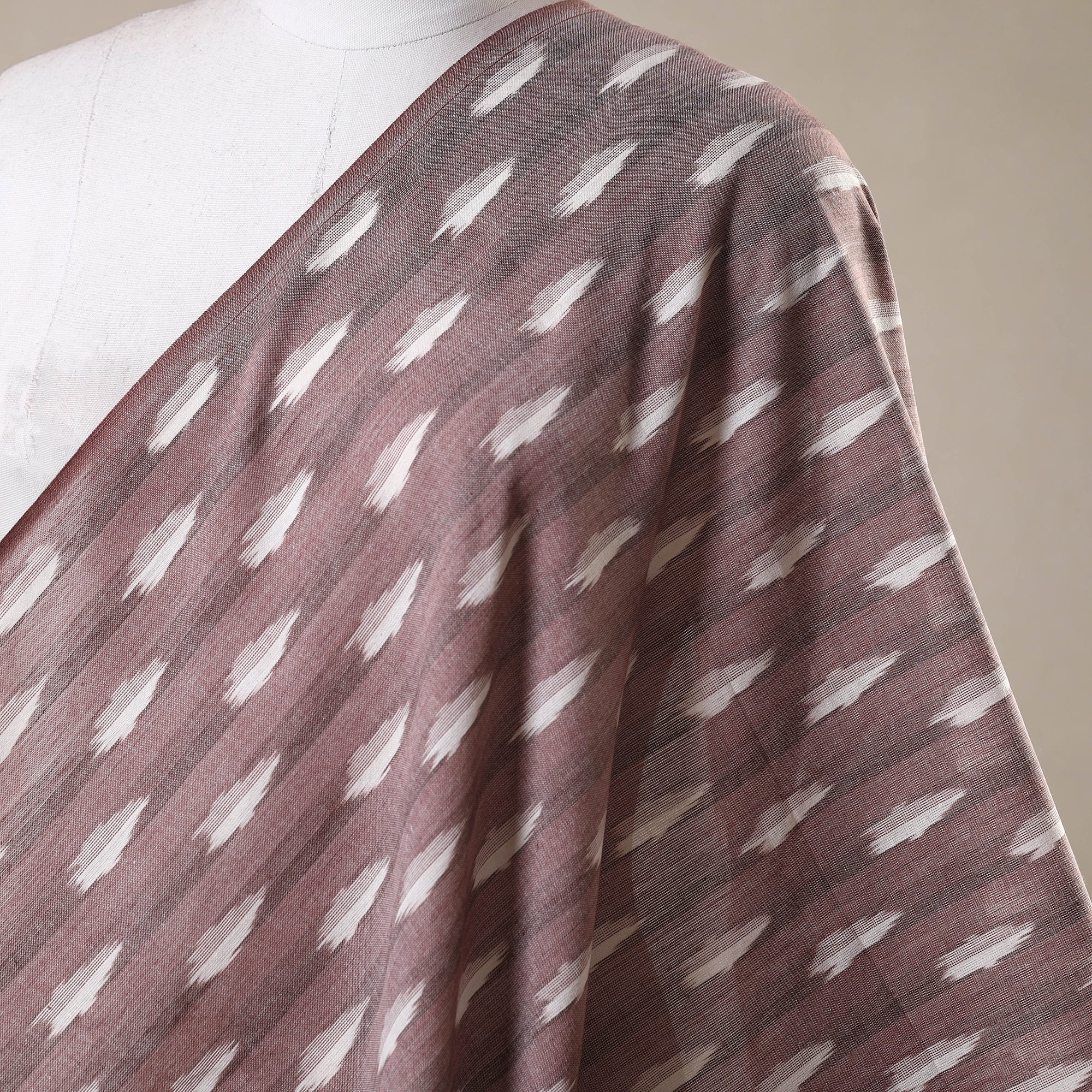 Fine quality brown pochampally Ikat cotton fabric from Telangana. Ikat is a unique dyeing technique that uses a resist process, similar to tie-dye, applied on either the warp or weft threads before weaving. It features striking patterns and is world-famous for its vibrant colors, distinctive texture, and intricate designs. Ideal for creating kurtas, dresses, tunics, or decorative home accents. This is a power loom fabric, crafted using the traditional hand tie-dye method.
