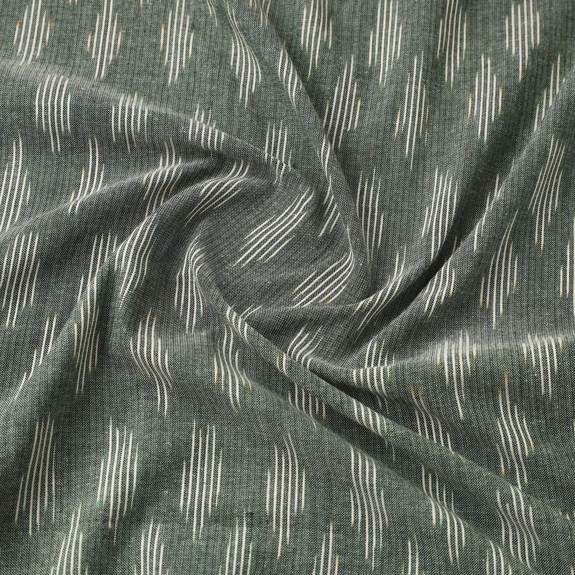 Green - Handloom Raw Silk Pochampally Ikat Fabric 01