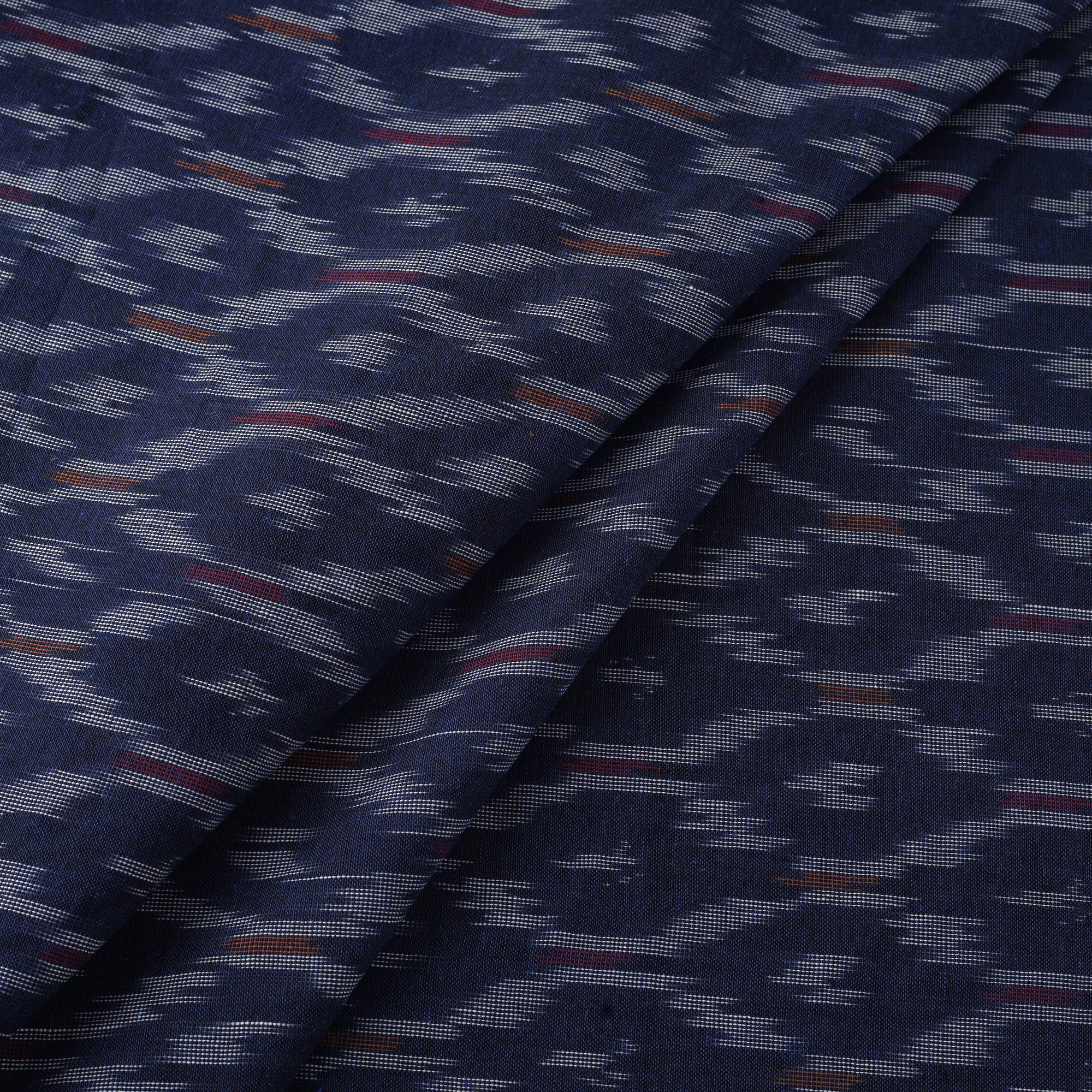 Fine quality blue pochampally Ikat cotton fabric from Telangana. Ikat is a unique dyeing technique that uses a resist process, similar to tie-dye, applied on either the warp or weft threads before weaving. It features striking patterns and is world-famous for its vibrant colors, distinctive texture, and intricate designs. Ideal for creating kurtas, dresses, tunics, or decorative home accents. This is a power loom fabric, crafted using the traditional hand tie-dye method.