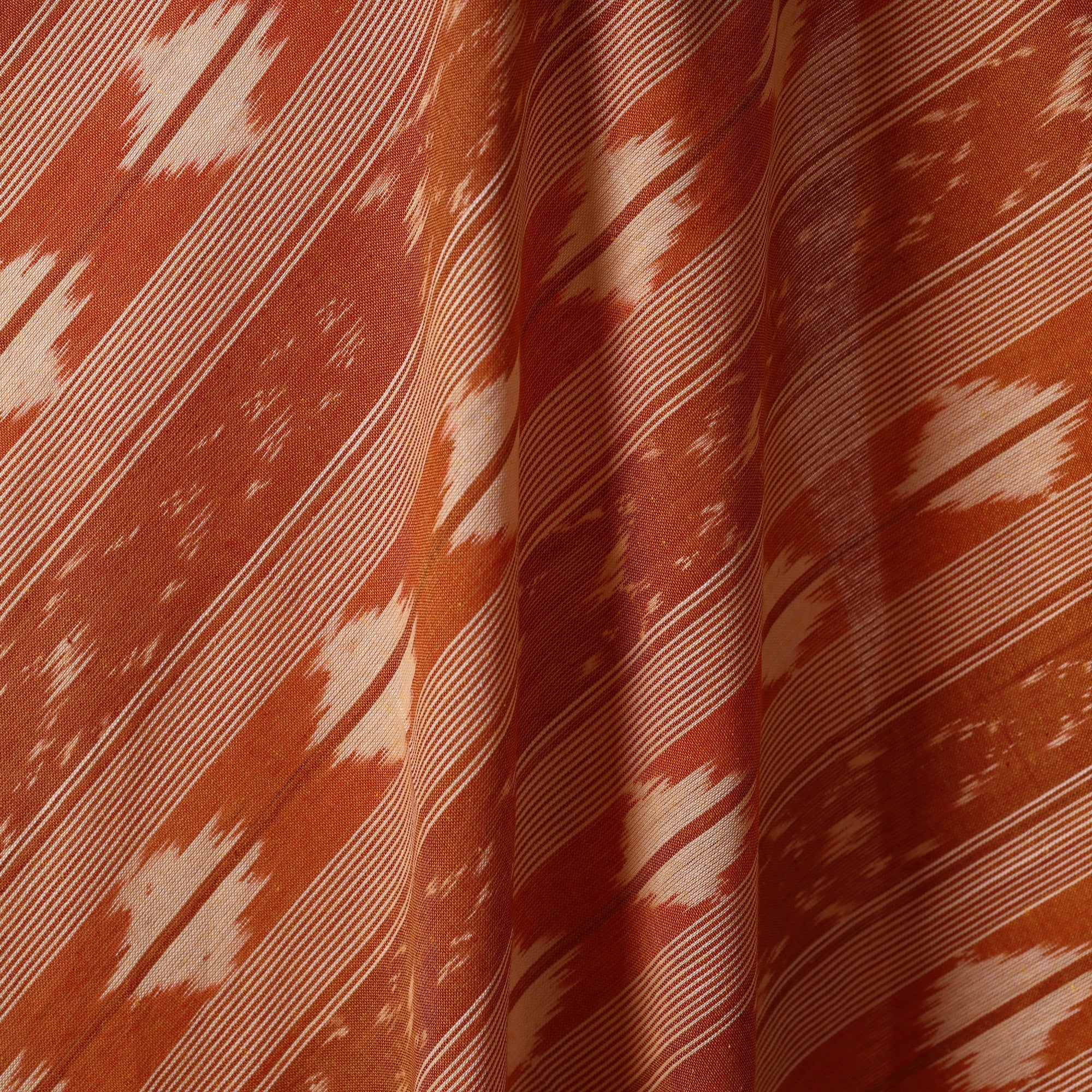 Fine quality brown pochampally Ikat cotton fabric from Telangana. Ikat is a unique dyeing technique that uses a resist process, similar to tie-dye, applied on either the warp or weft threads before weaving. It features striking patterns and is world-famous for its vibrant colors, distinctive texture, and intricate designs. Ideal for creating kurtas, dresses, tunics, or decorative home accents. This is a power loom fabric, crafted using the traditional hand tie-dye method.
