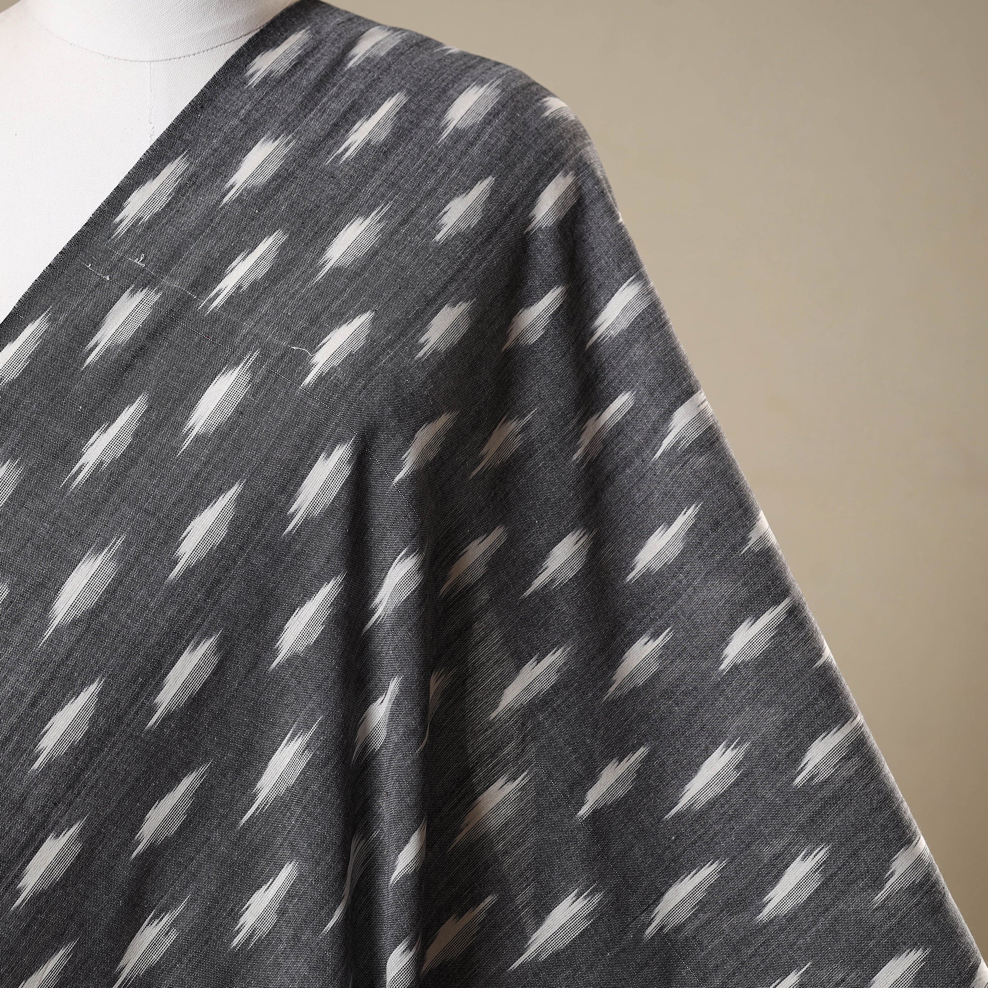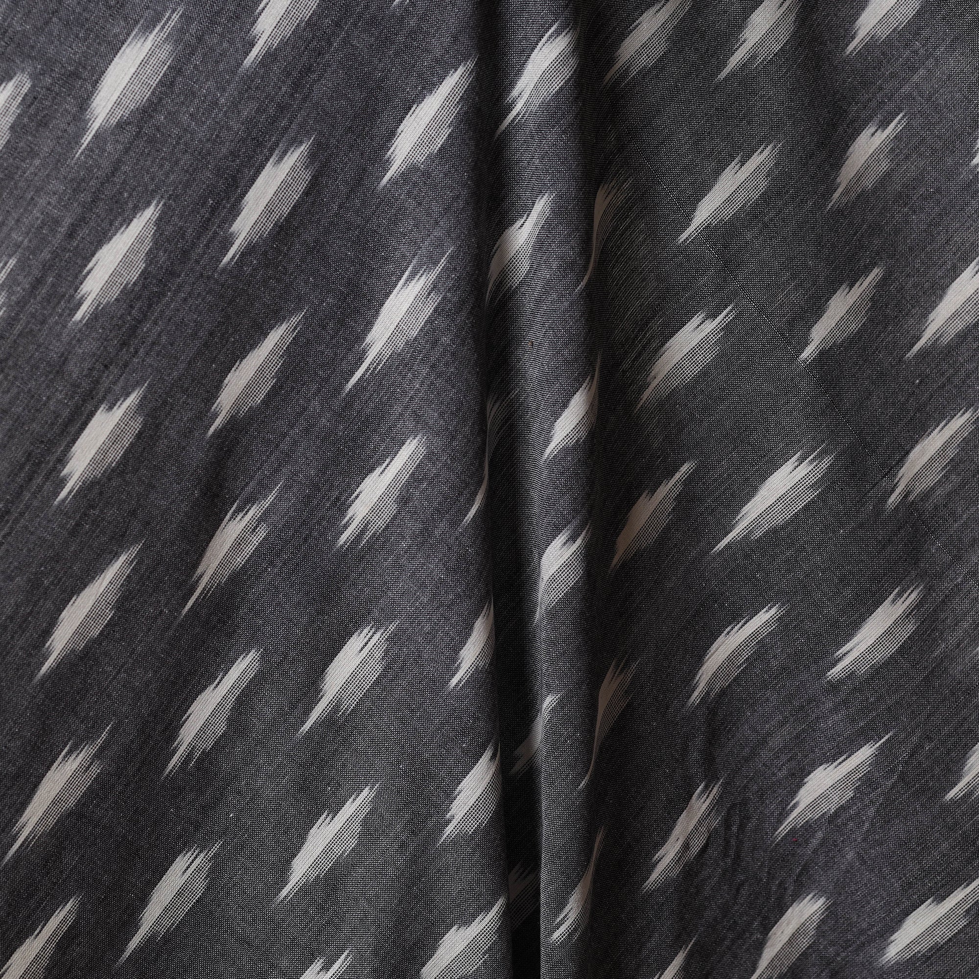This grey cotton pochampally Ikat fabric from Telangana reflects the elegance of India’s iconic weaving tradition. Created through the intricate Ikat resist-dye technique, where the warp and weft yarns are carefully dyed before weaving, it forms striking geometric patterns. Celebrated for its vibrant shades and distinctive textures, this fabric is ideal for tailoring garments as well as designing home decor pieces.
