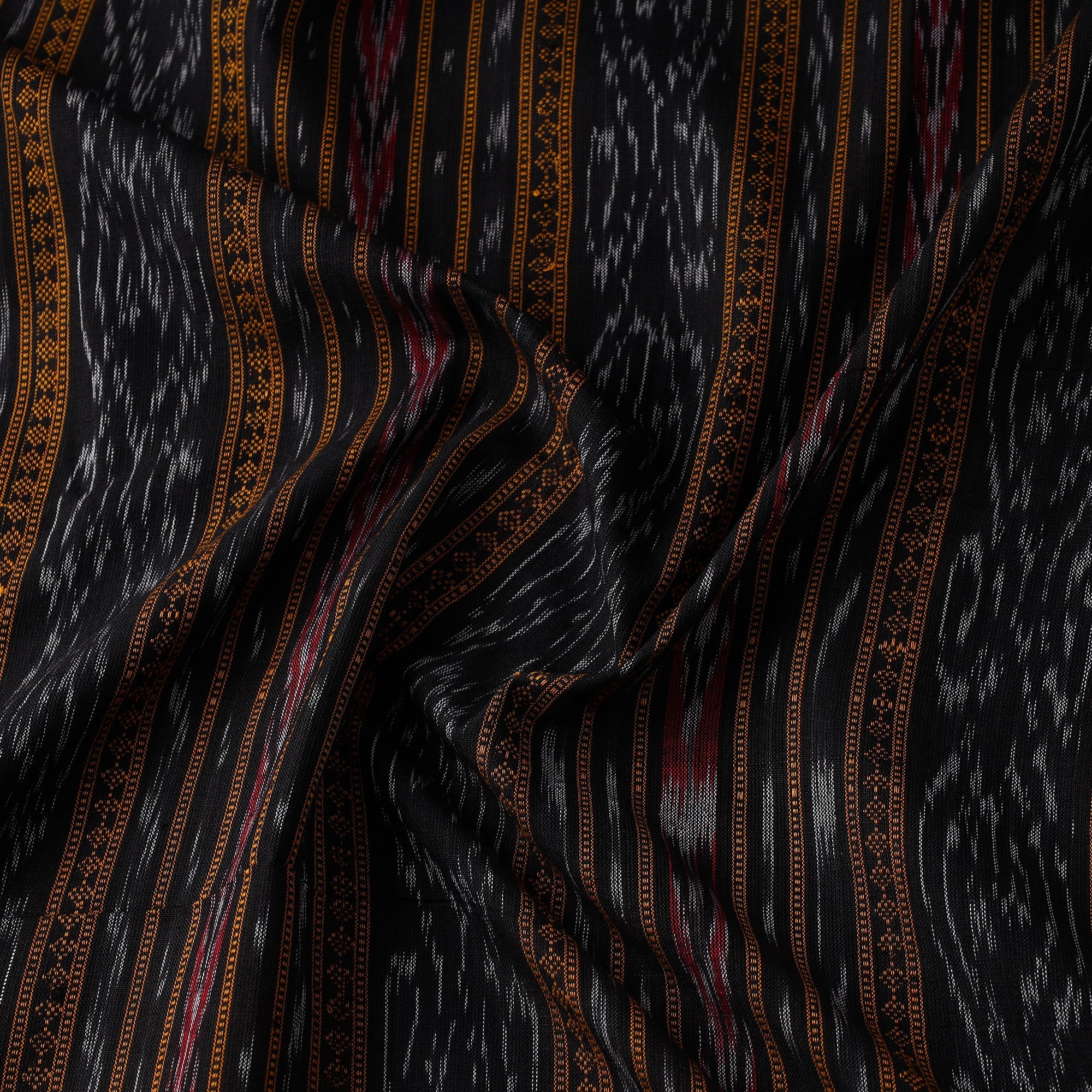 Black - Sambalpuri Ikat Handloom Cotton 3pc Unstitched Dress Material 16