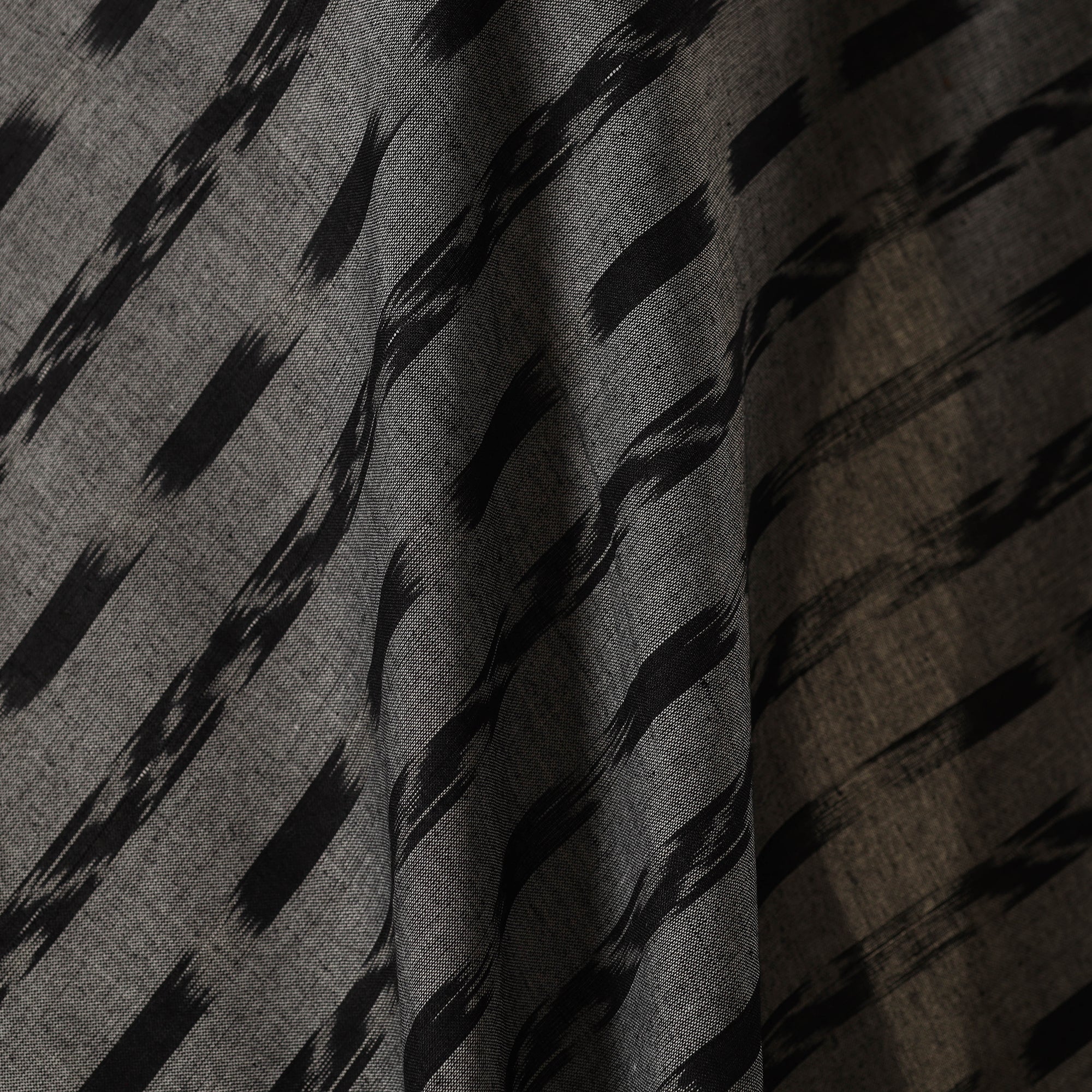 Grey sambalpuri ikat cotton fabric from Odisha features traditional motifs like shankha, chakra and phula. Crafted by skilled artisans of eastern India using the Ikat technique, where threads are resist-dyed before weaving. This breathable fabric is easy to stitch, making it perfect for kurtas, dresses or home decor.