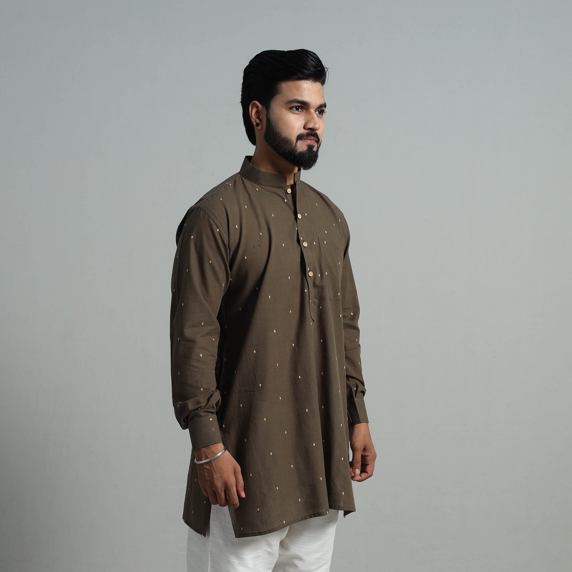 Step into elegance with cotton short jacquard kurta for men, a perfect blend of tradition and style. Handcrafted from jacquard fabric, this short kurta features full sleeves, a front button placket, and a chinese collar for a modern touch. With functional side pockets, it’s designed for comfort and practicality. Ideal for festive occasions or casual wear, this kurta celebrates India’s artisanal heritage.