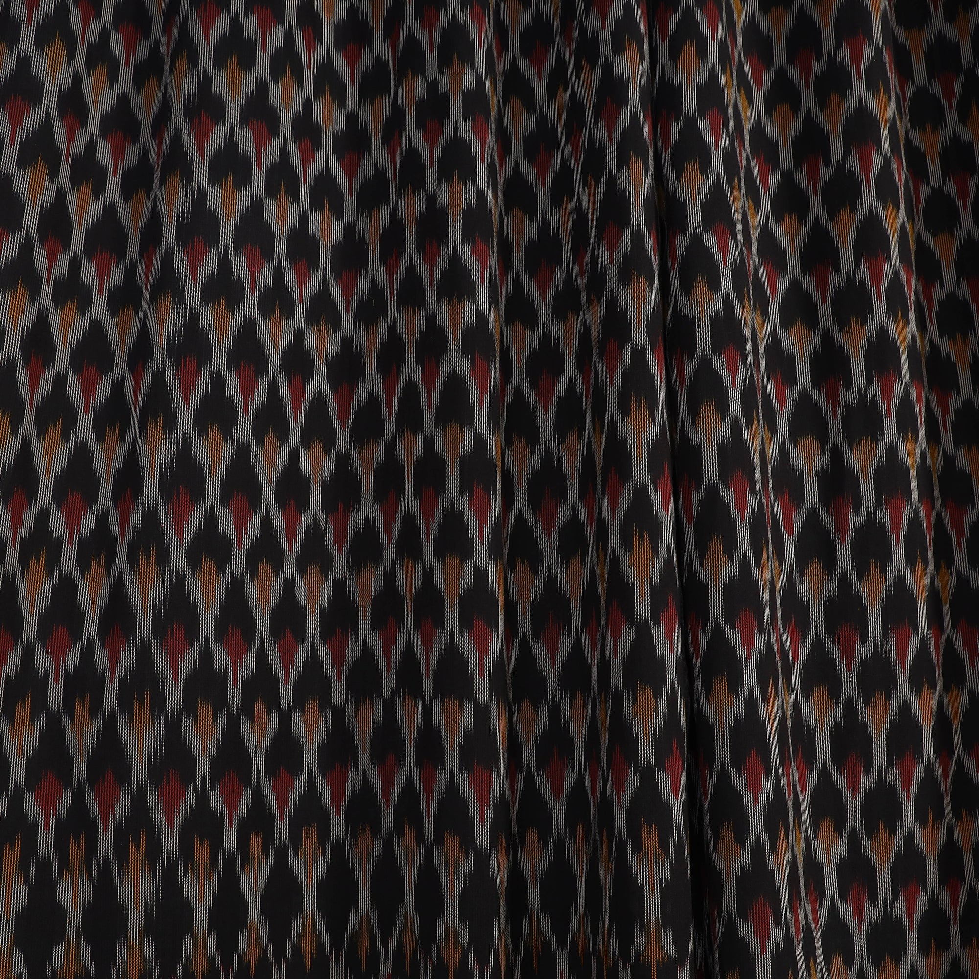 This black pochampally ikat woven cotton window curtain adds an ethnic touch to any room, making it a perfect addition to your home decor collection. Originating from Telangana, the Ikat craft is renowned for its vibrant geometric patterns. Before weaving, the threads are carefully dyed to create these intricate designs. Indian Ikat is a fabric admired by fashion designers worldwide for its artistry and elegance.