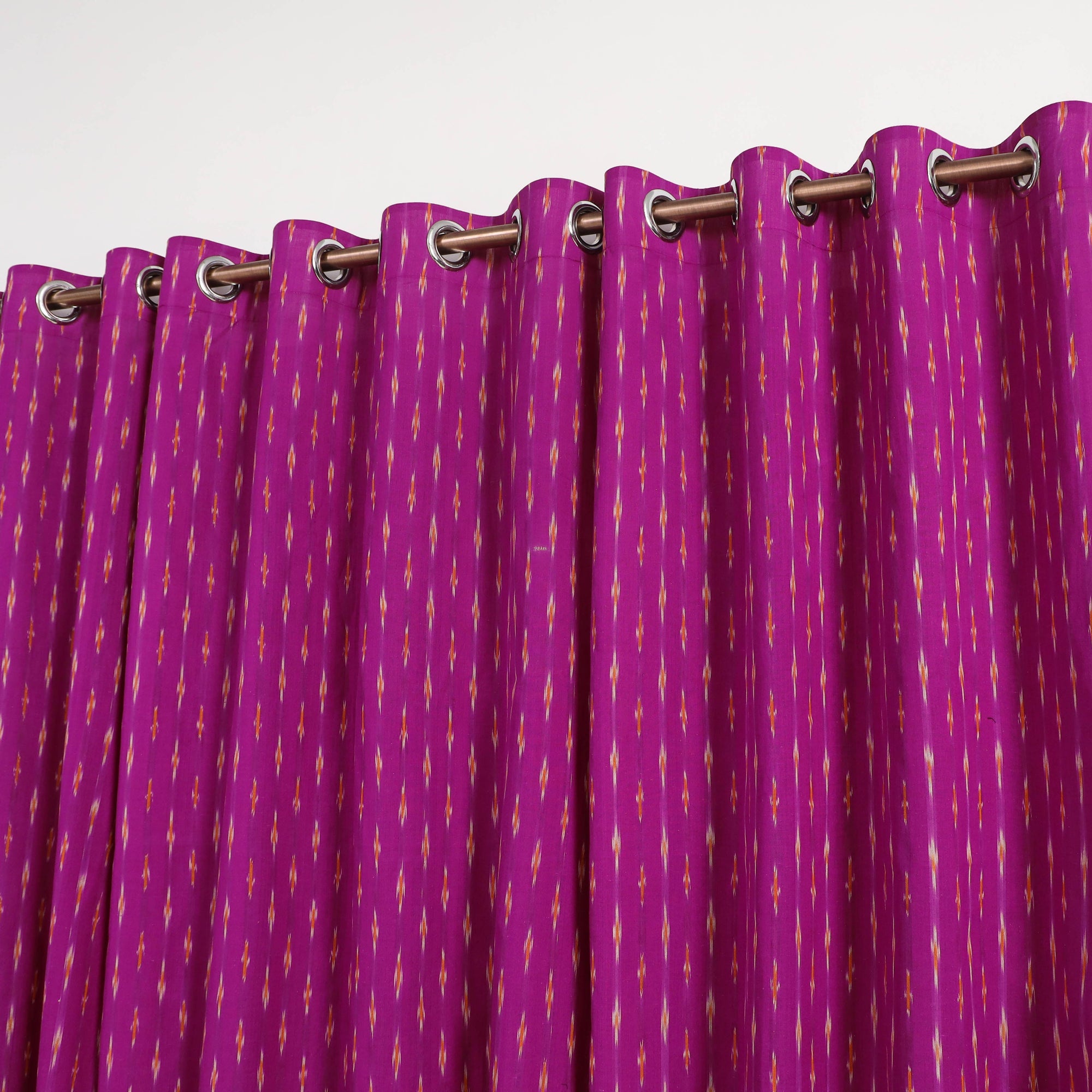This purple pochampally ikat woven cotton window curtain adds an ethnic touch to any room, making it a perfect addition to your home decor collection. Originating from Telangana, the Ikat craft is renowned for its vibrant geometric patterns. Before weaving, the threads are carefully dyed to create these intricate designs. Indian Ikat is a fabric admired by fashion designers worldwide for its artistry and elegance.