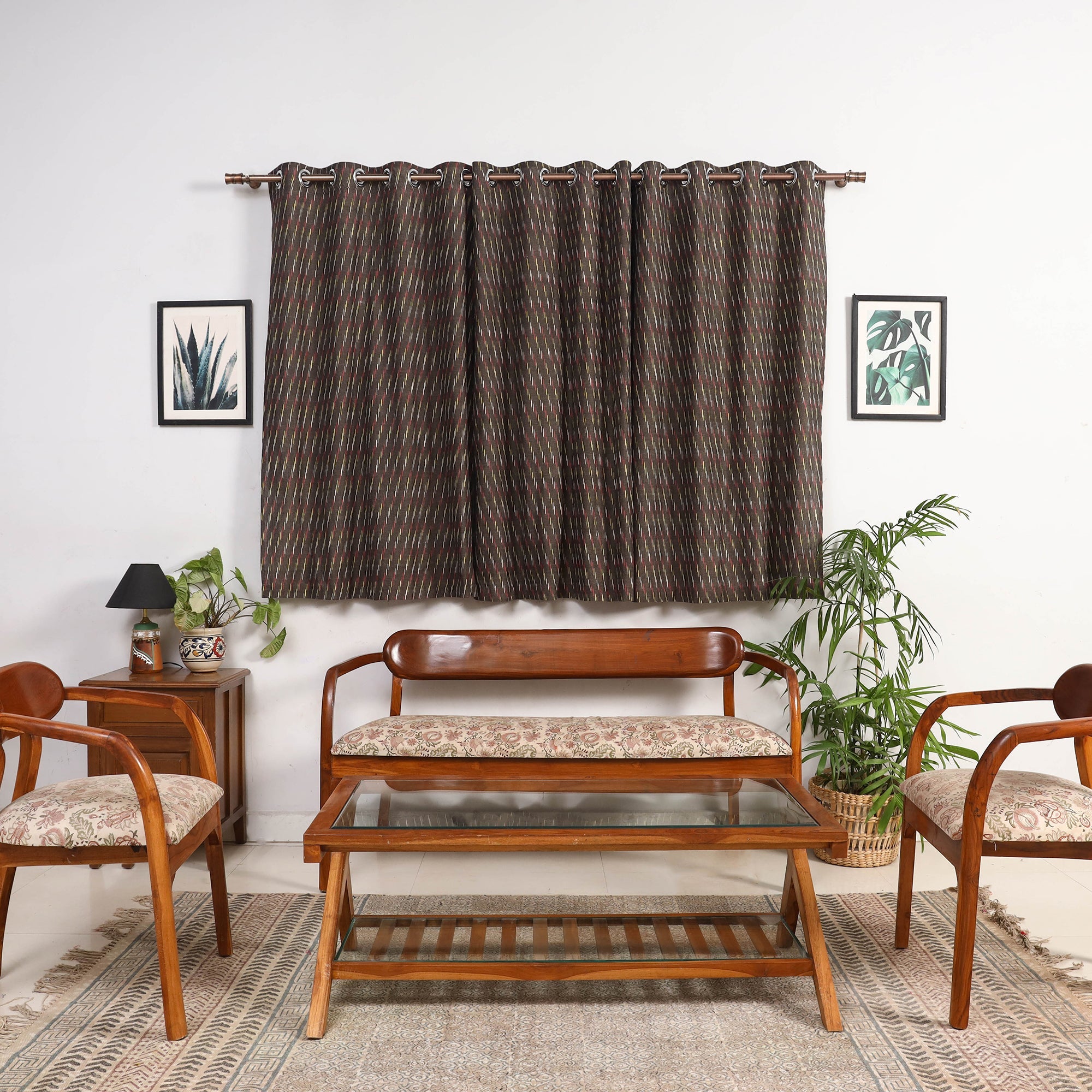 This brown pochampally ikat woven cotton window curtain adds an ethnic touch to any room, making it a perfect addition to your home decor collection. Originating from Telangana, the Ikat craft is renowned for its vibrant geometric patterns. Before weaving, the threads are carefully dyed to create these intricate designs. Indian Ikat is a fabric admired by fashion designers worldwide for its artistry and elegance.