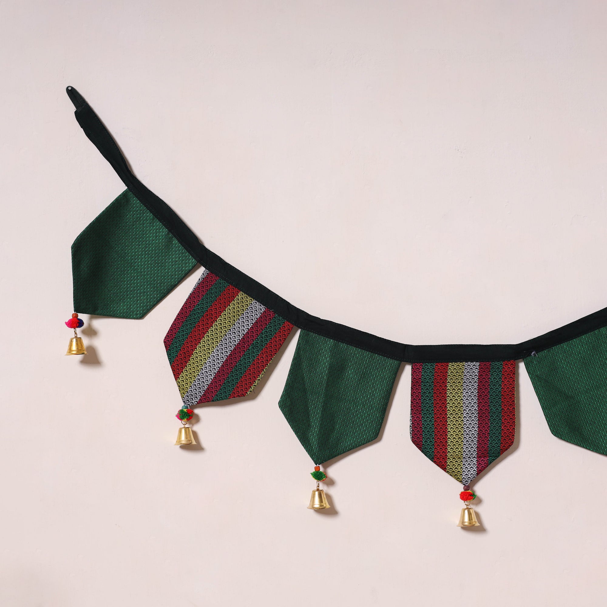 Celebrate Festivals with this handcrafted multicolor fabric toran, created by skilled artisans and adorned with beads, vibrant pom-poms, and intricate decorative detailing. Designed to spread festive cheer, it brightens your doorway with a colorful touch. Perfect for special occasions, up coming festivals or daily decor, this piece beautifully reflects a blend of multiple art forms, gracefully combining tradition with creativity.
