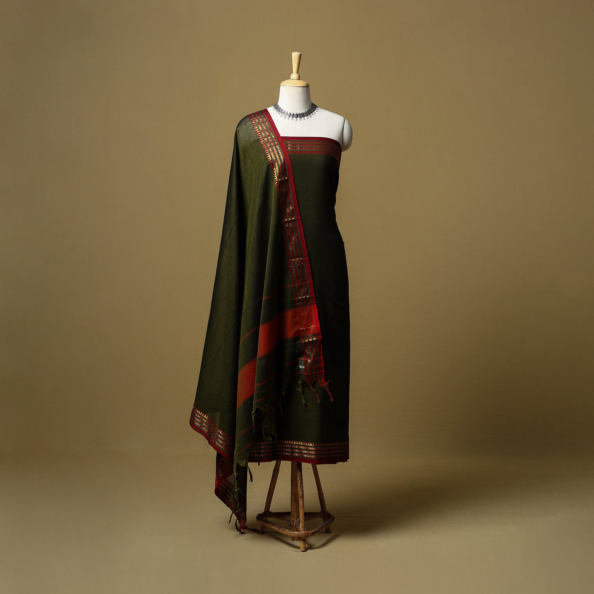 Green - 3pc Cotton Unstitched Dharwad Dress Material with Border 46