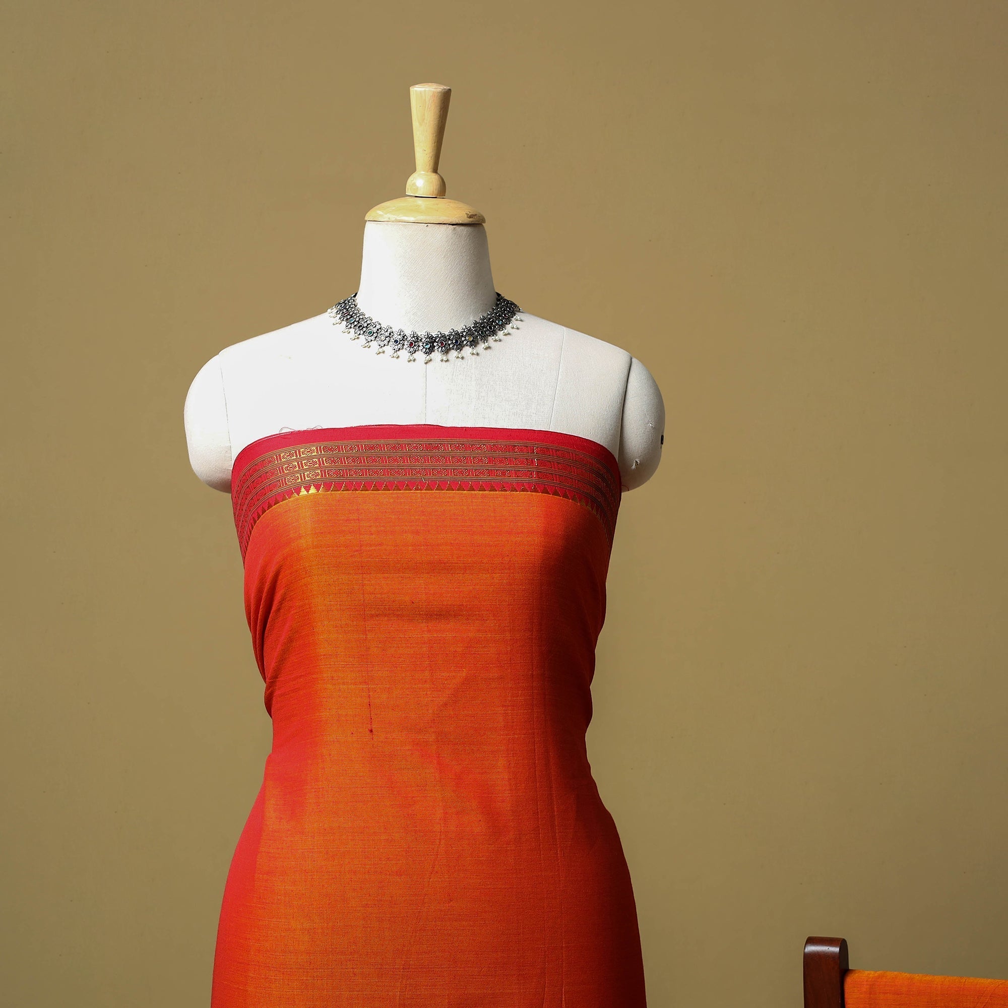 Orange - 3pc Cotton Unstitched Dharwad Dress Material with Border 09