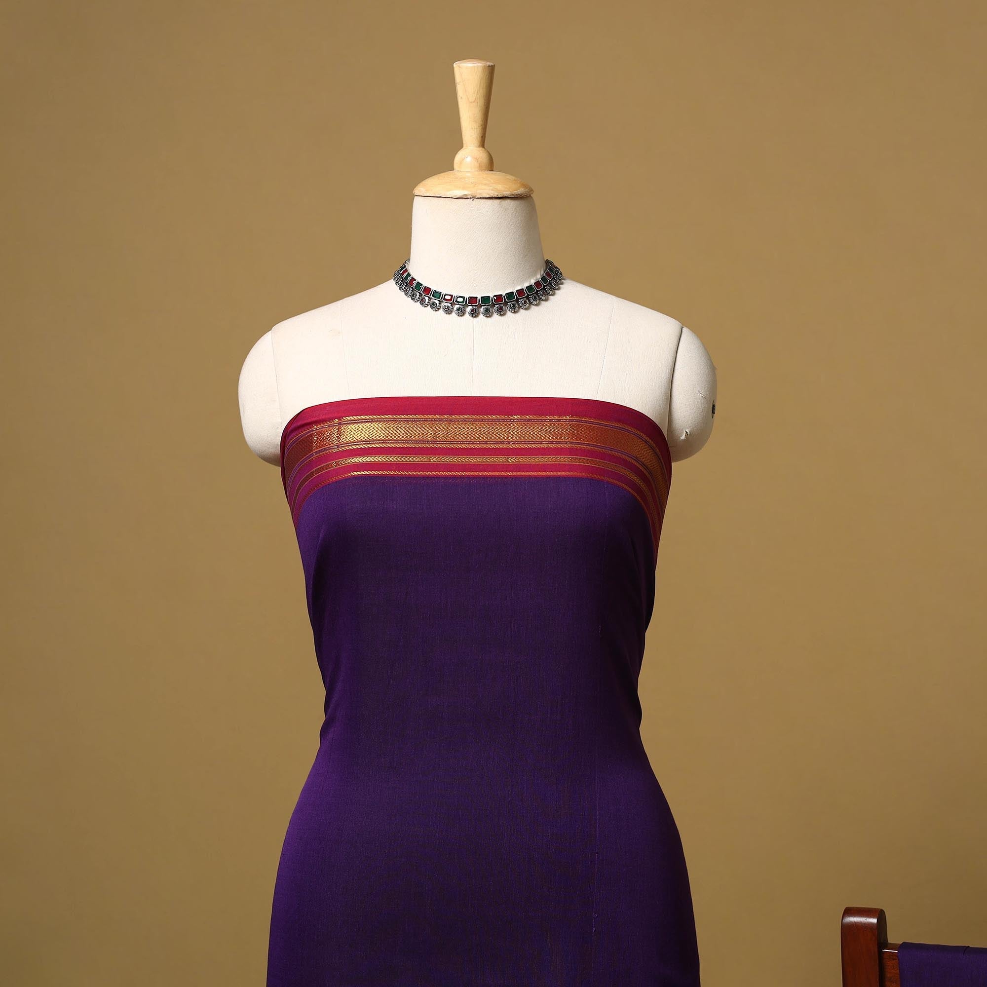 Purple - 3pc Cotton Unstitched Dharwad Dress Material with Border 14