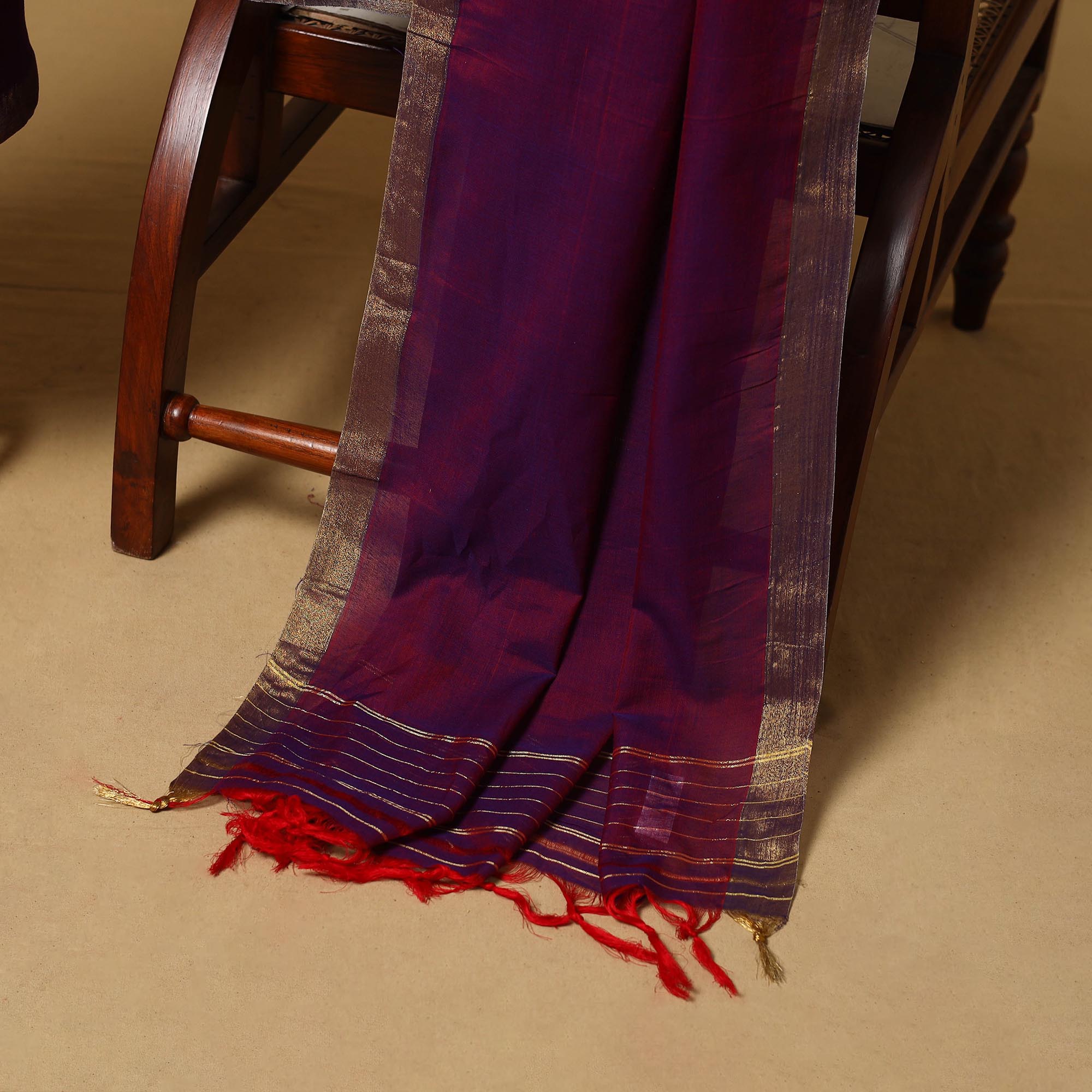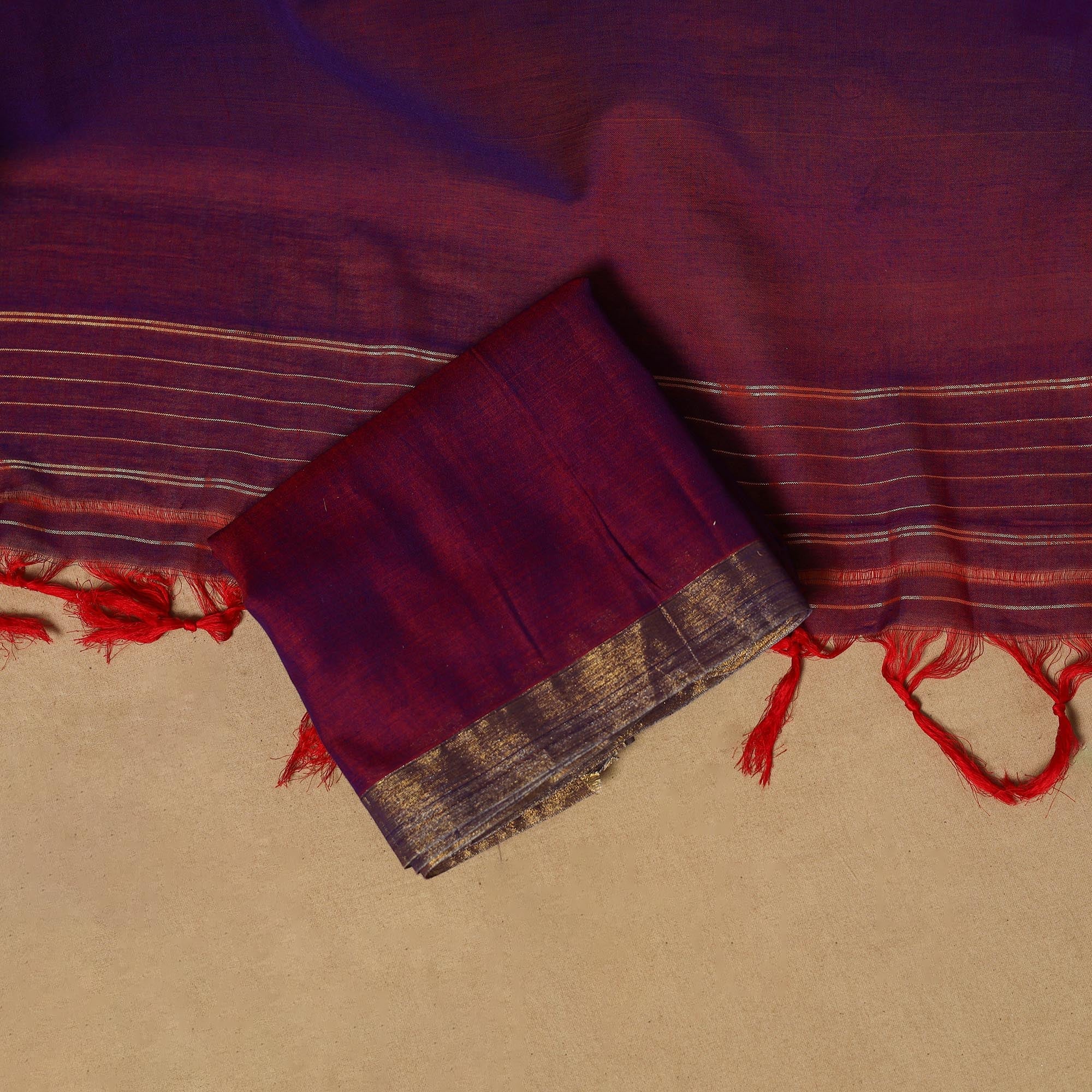 Purple - 3pc Cotton Unstitched Dharwad Dress Material with Border 14