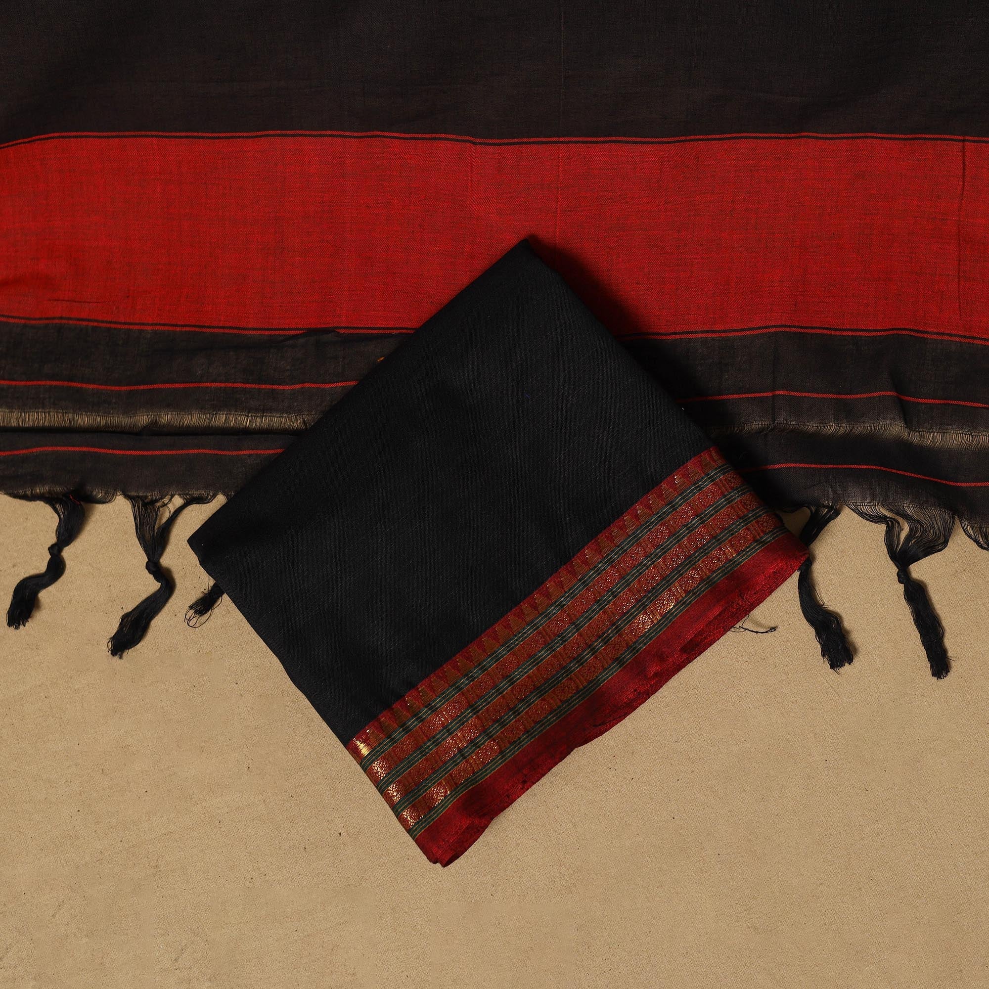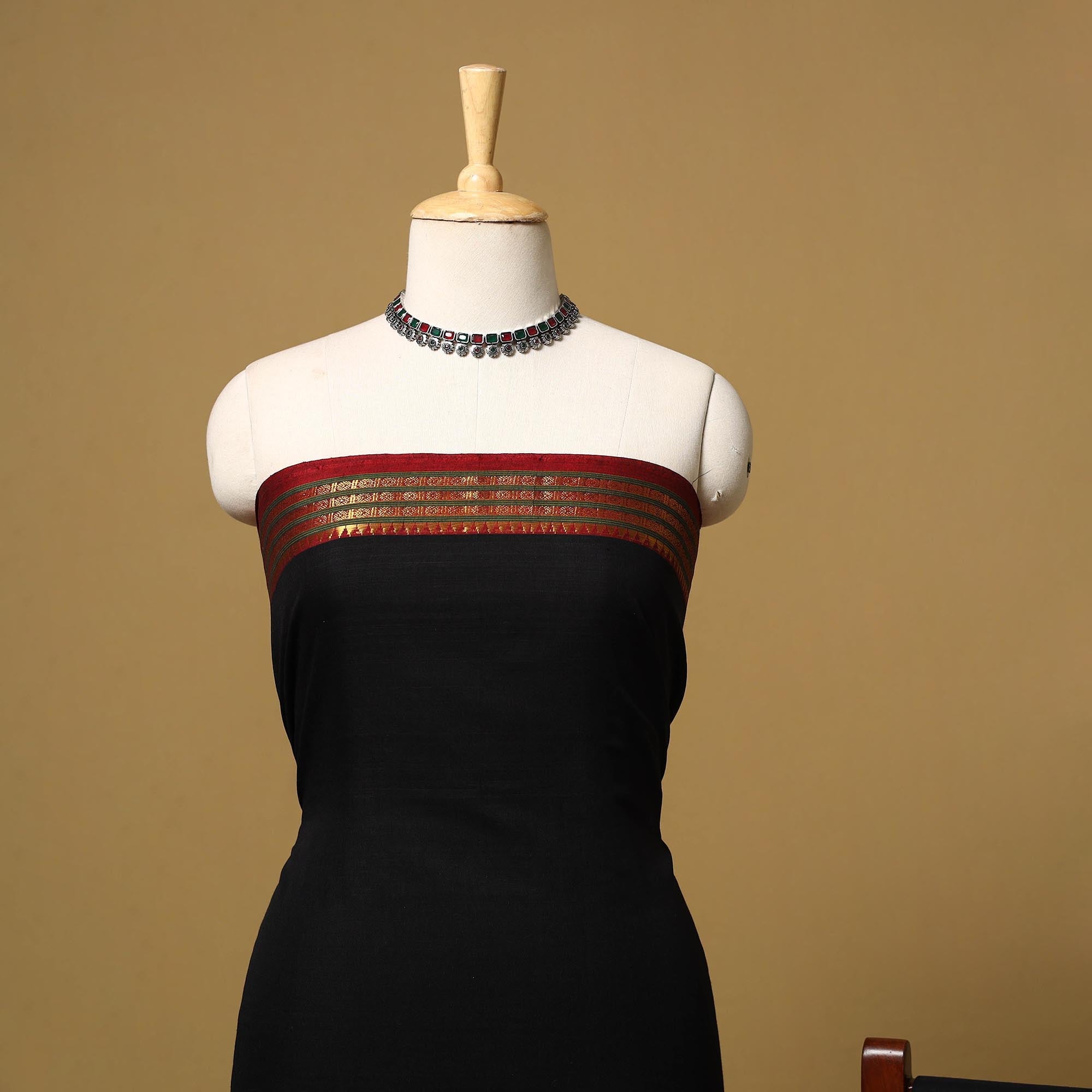 Black - Dharwad Cotton 3pc Unstitched Dress Material with Border 30