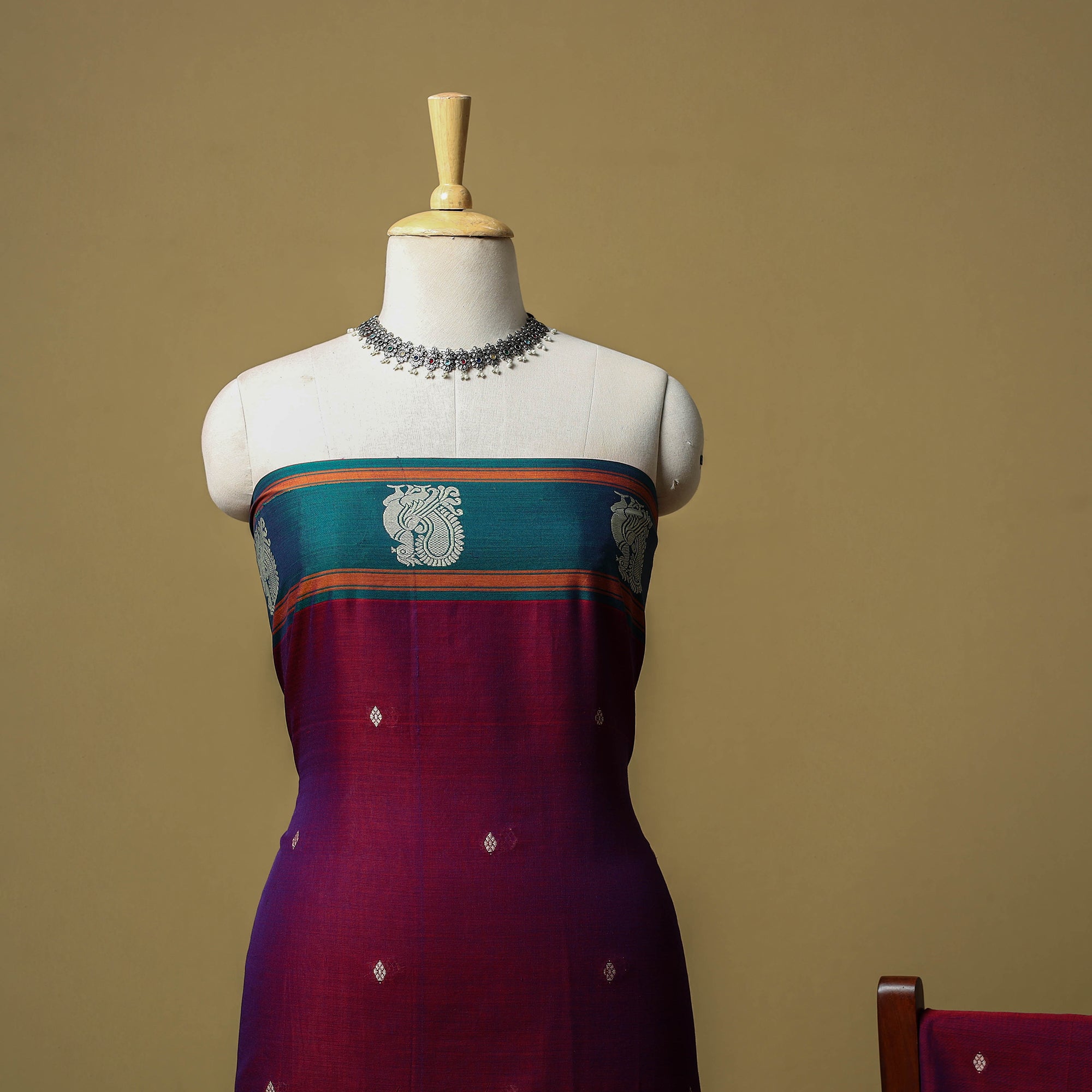 Purple - 3pc Cotton Unstitched Dharwad Dress Material with Border 31