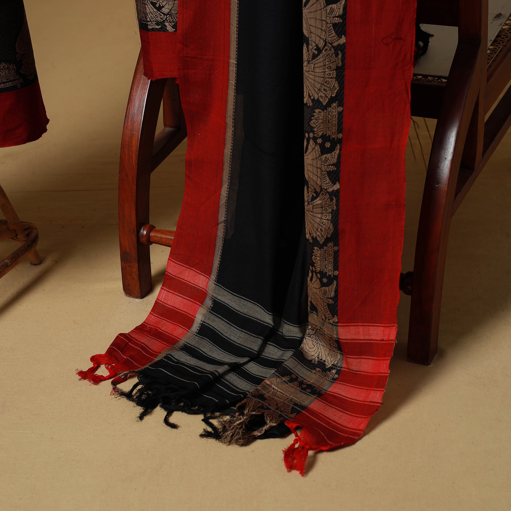 Dharwad cotton 3pc unstitched dress material from Karnataka is woven using a traditional method known for its firm texture and intricate border work. The border features fine motifs and patterns that reflect the region’s style. The set includes a beautifully crafted kurta piece, a matching bottom/salwar piece and a coordinating dupatta. Perfect for custom tailoring and everyday wear.