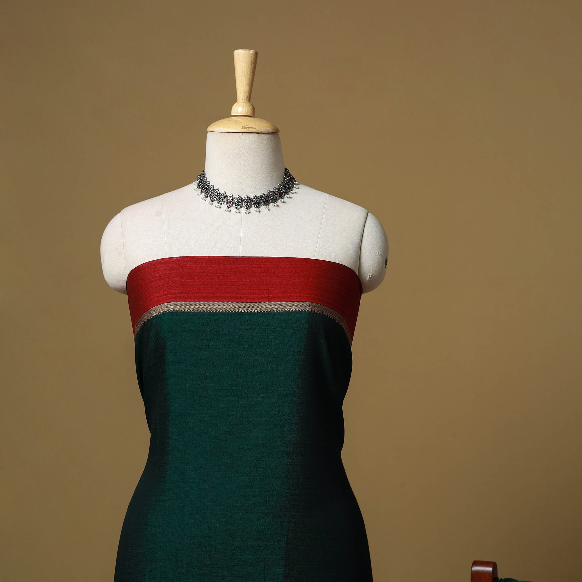 Dharwad cotton 3pc unstitched dress material from Karnataka is woven using a traditional method known for its firm texture and intricate border work. The border features fine motifs and patterns that reflect the region’s style. The set includes a beautifully crafted kurta piece, a matching bottom/salwar piece and a coordinating dupatta. Perfect for custom tailoring and everyday wear.