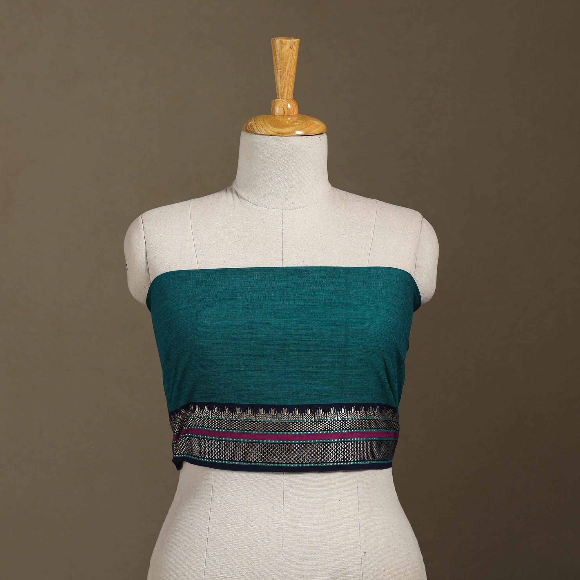 This green dharwad cotton blouse piece, made from soft, breathable fabric, combines everyday comfort with traditional elegance. Celebrated for its durability and charm, it complements sarees beautifully and enhances any ethnic wardrobe. Handwoven by skilled artisans from Karnataka, it proudly carries forward the rich textile heritage of the region.