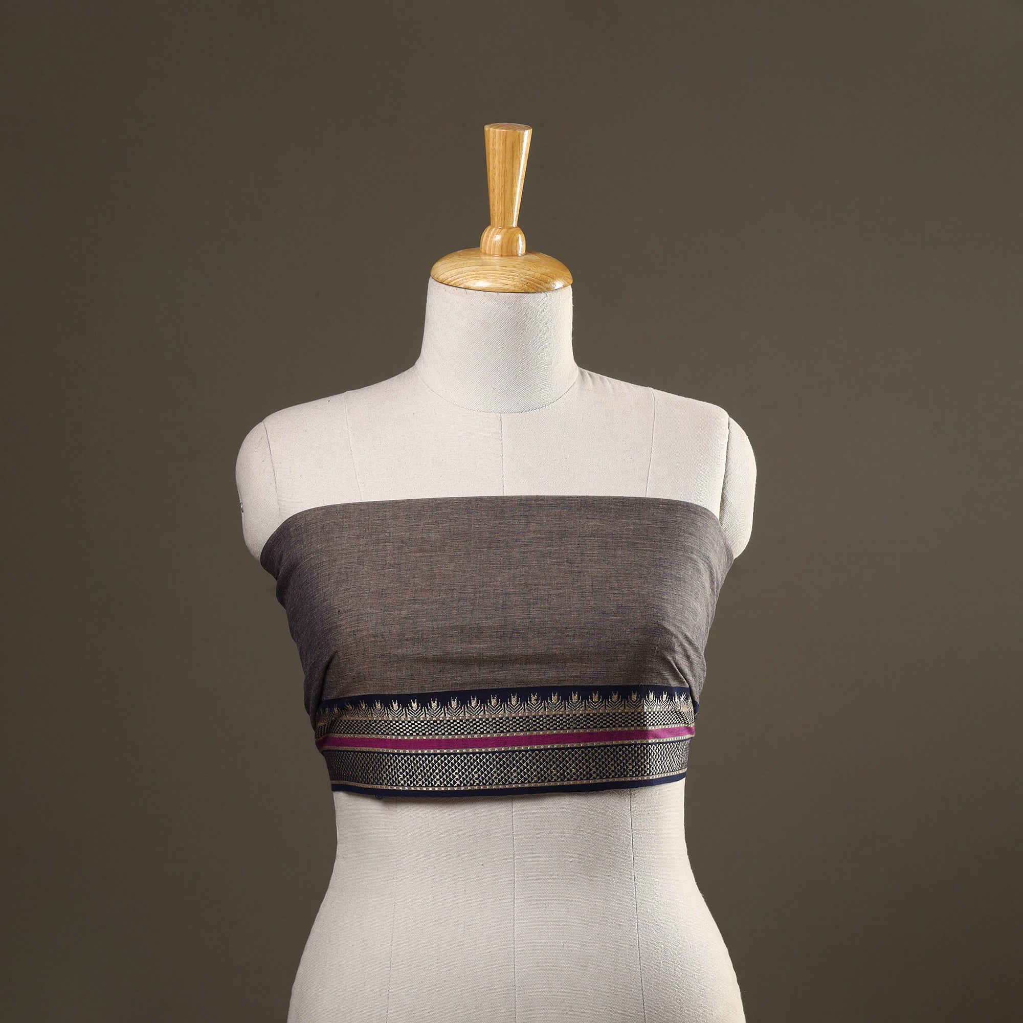 The brown dharwad cotton blouse piece, crafted from soft and breathable cotton, offers the perfect blend of comfort and traditional charm. Renowned for its durability and timeless elegance, it pairs beautifully with sarees and makes a versatile addition to any ethnic wardrobe.