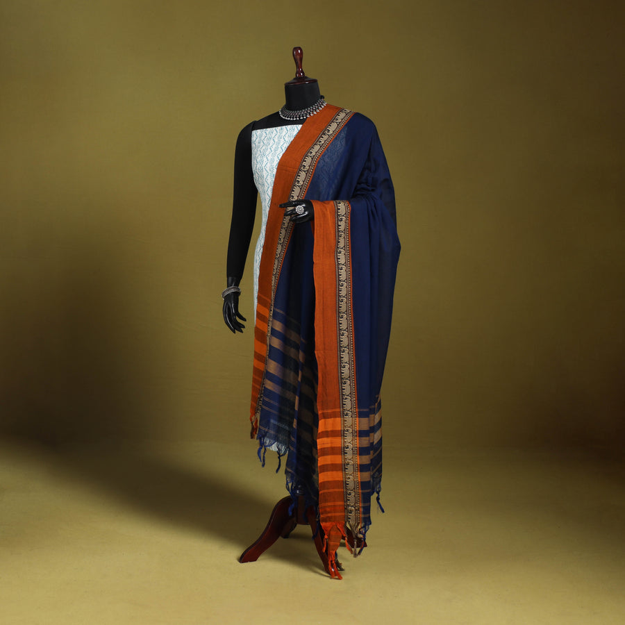 Blue - Dharwad Cotton Dupatta with Zari Border 03