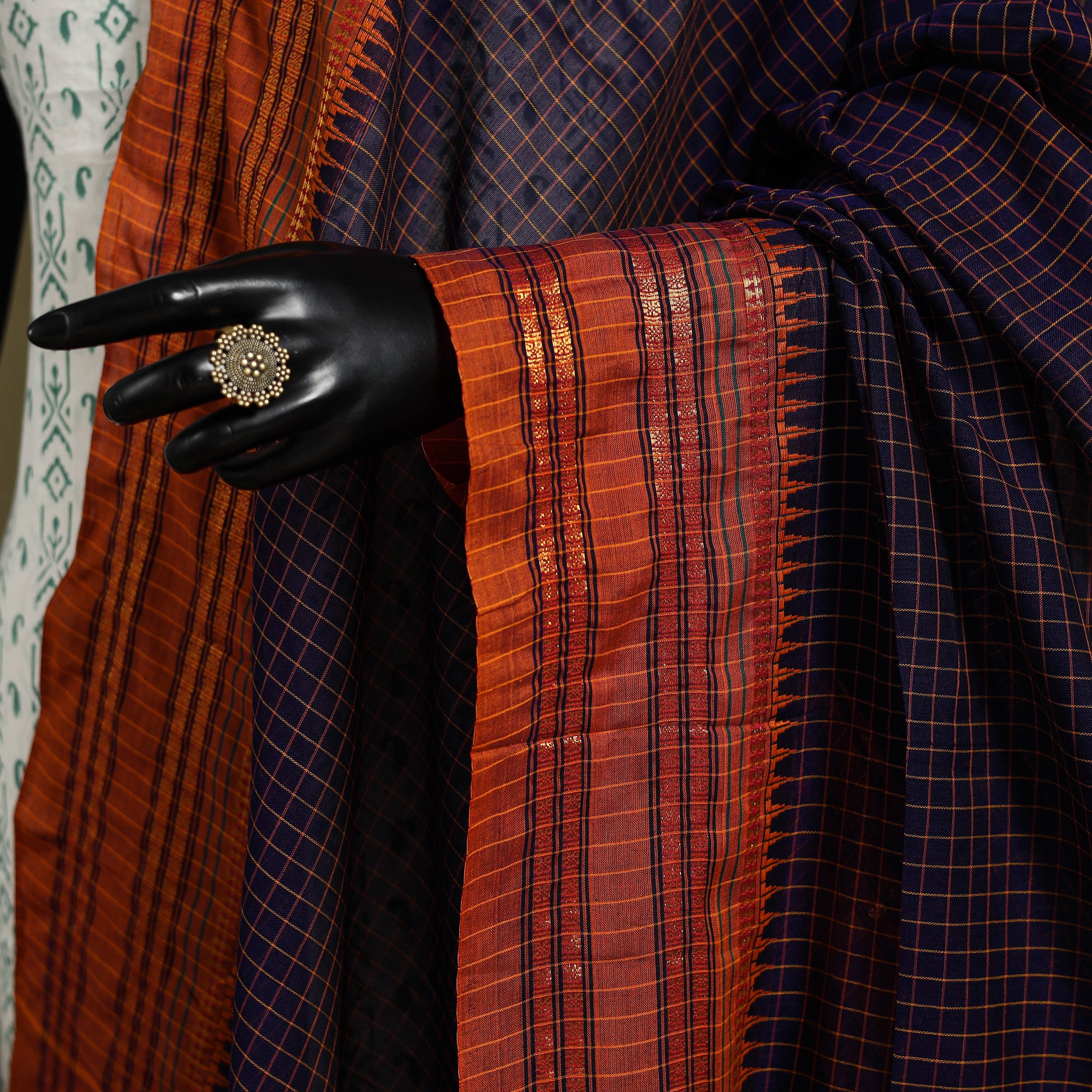Purple - Dharwad Cotton Dupatta with Zari Border 09