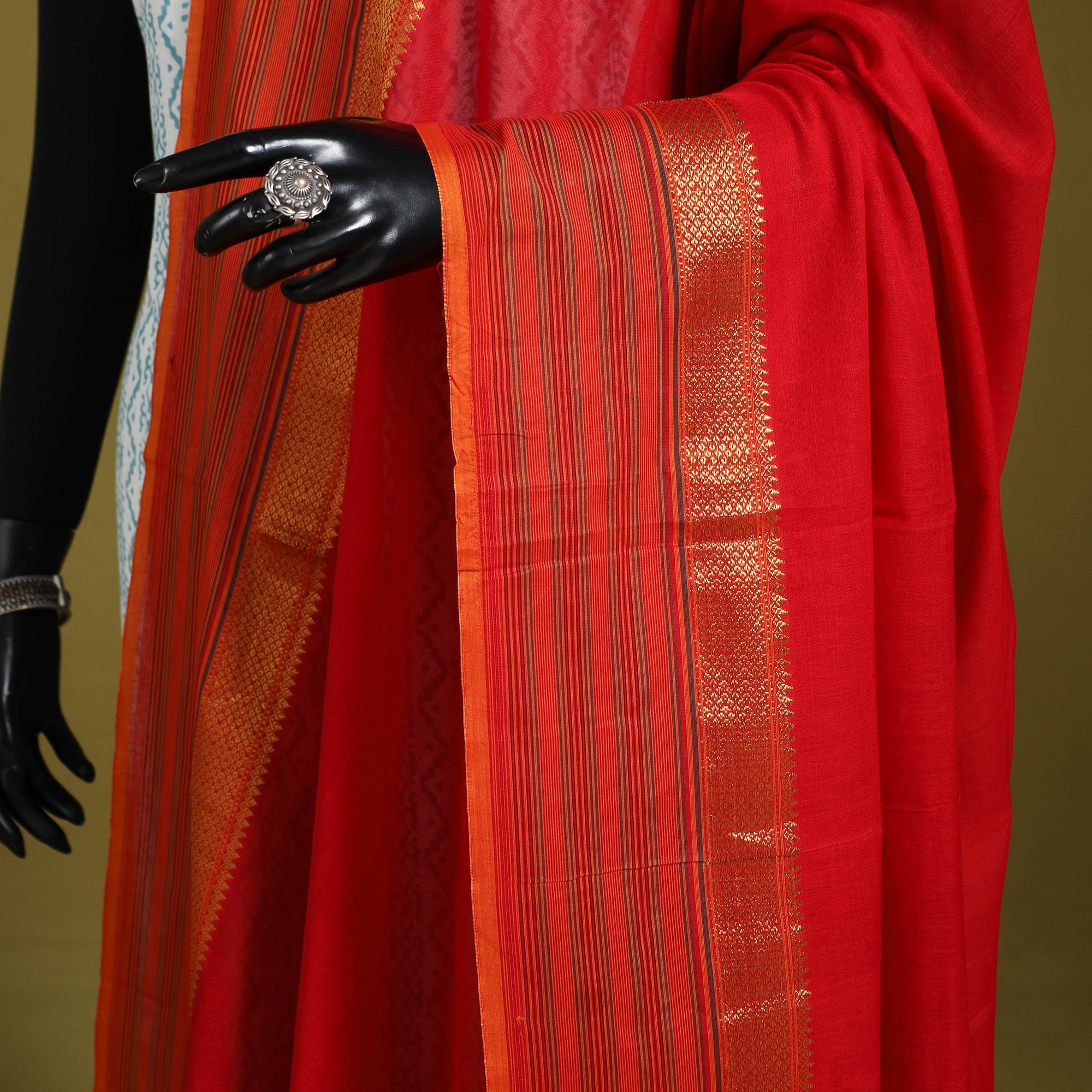 Red - Dharwad Cotton Dupatta with Zari Border 09