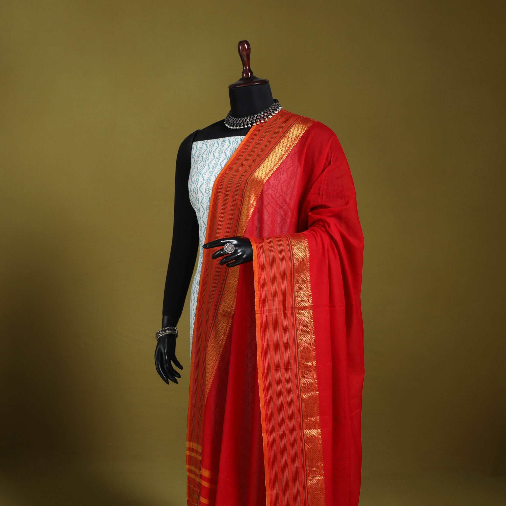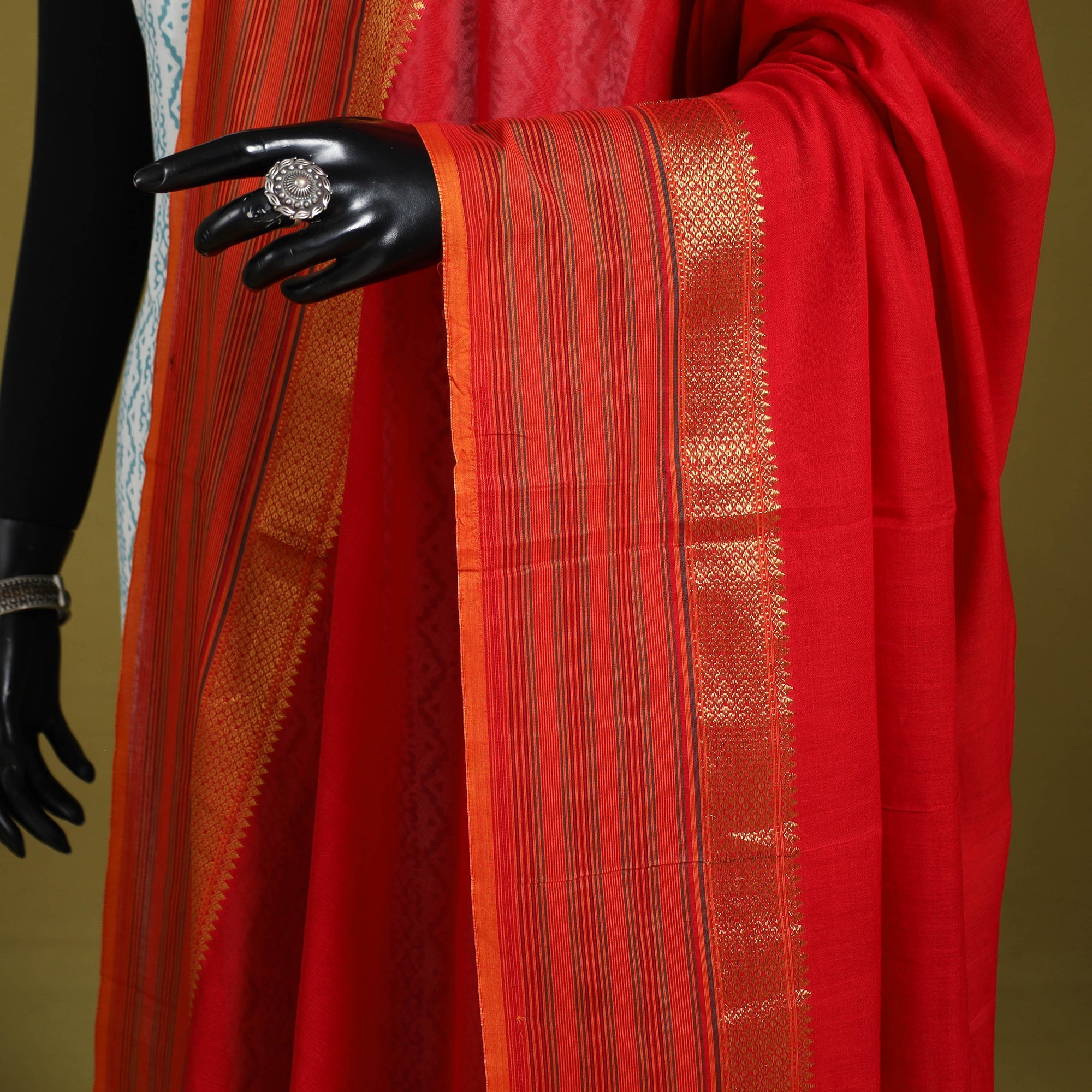 • Red - dharwad cotton dupatta with zari border 09