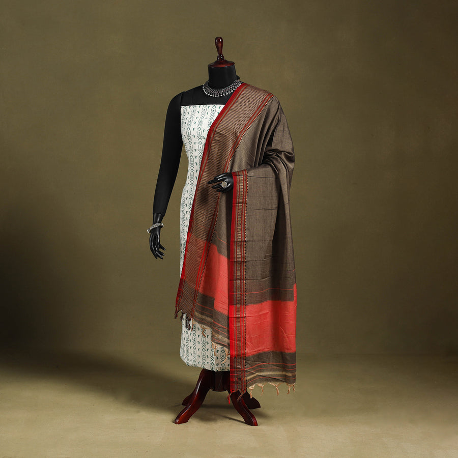3pc Cotton Unstitched Dharwad Dress Material with Border 25
