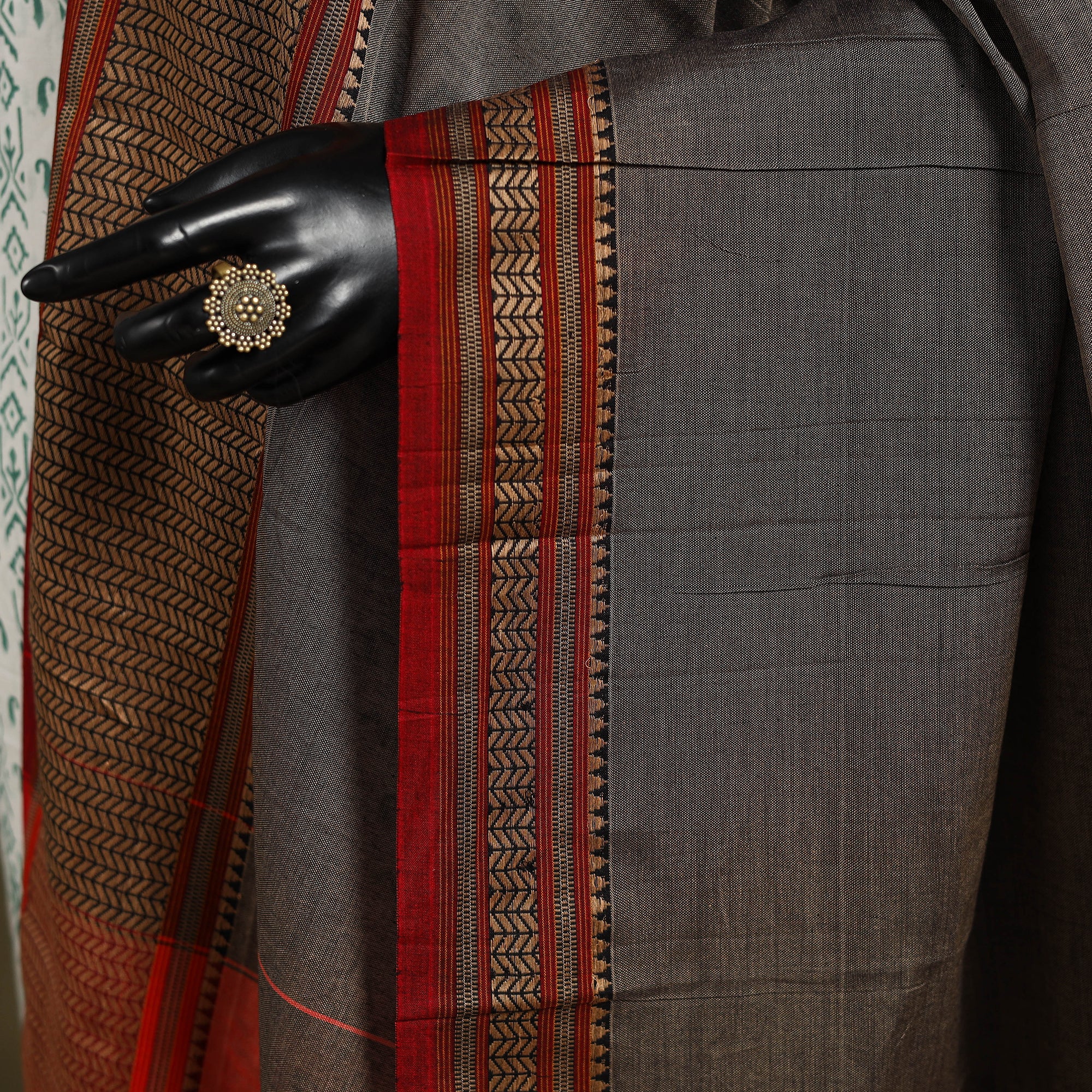 Black - 3pc Cotton Unstitched Dharwad Dress Material with Border 16