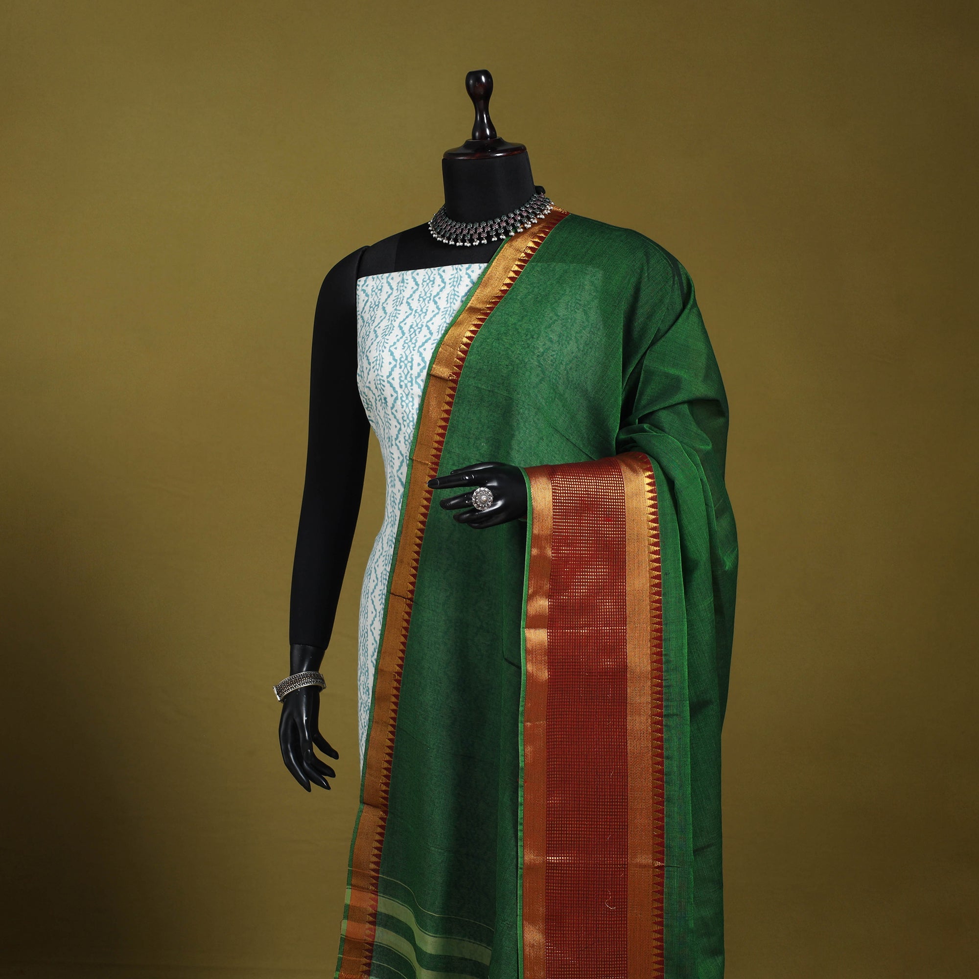 Green - Dharwad Cotton 3pc Unstitched Dress Material with Border 25