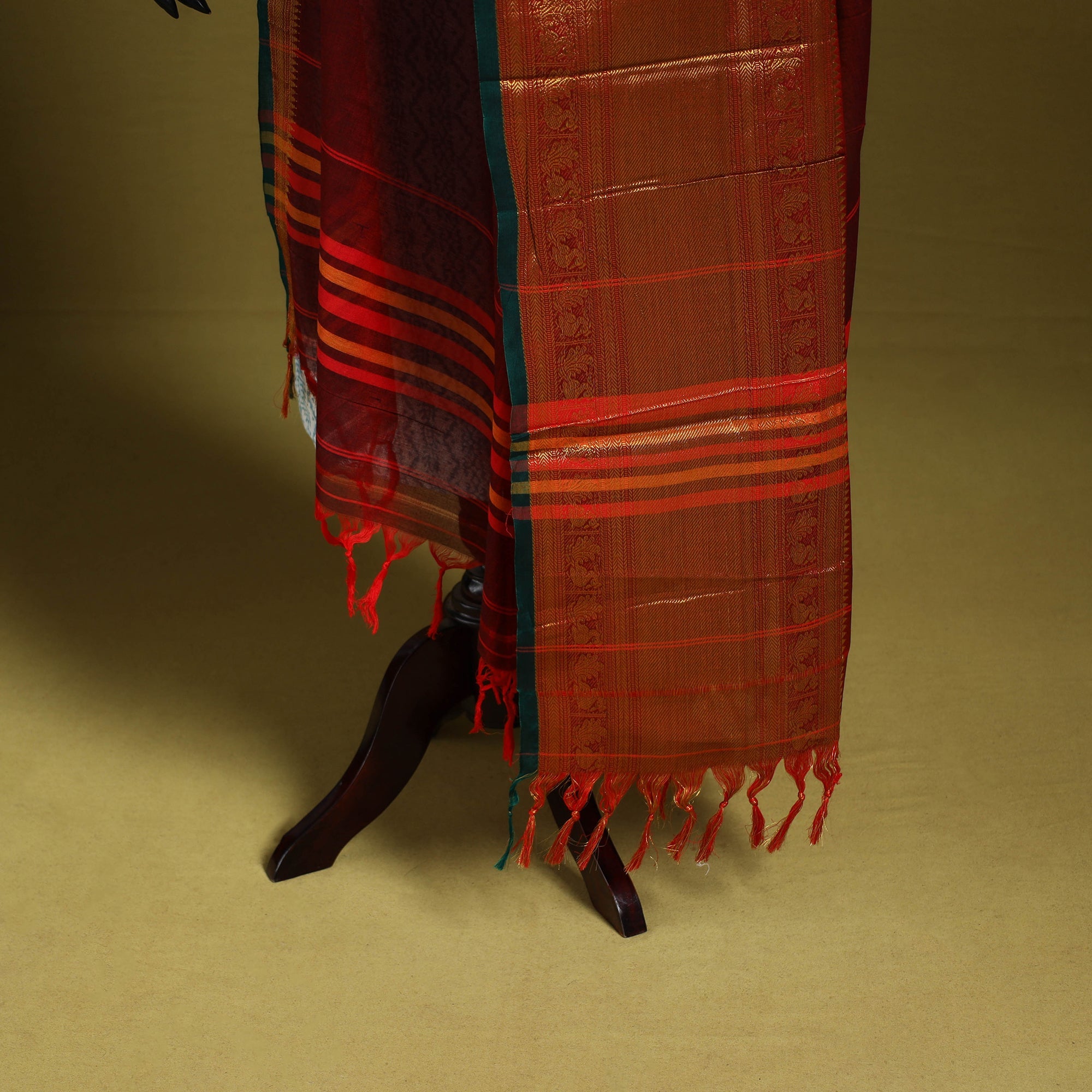 Maroon - Dharwad Cotton Dupatta with Zari Border 28