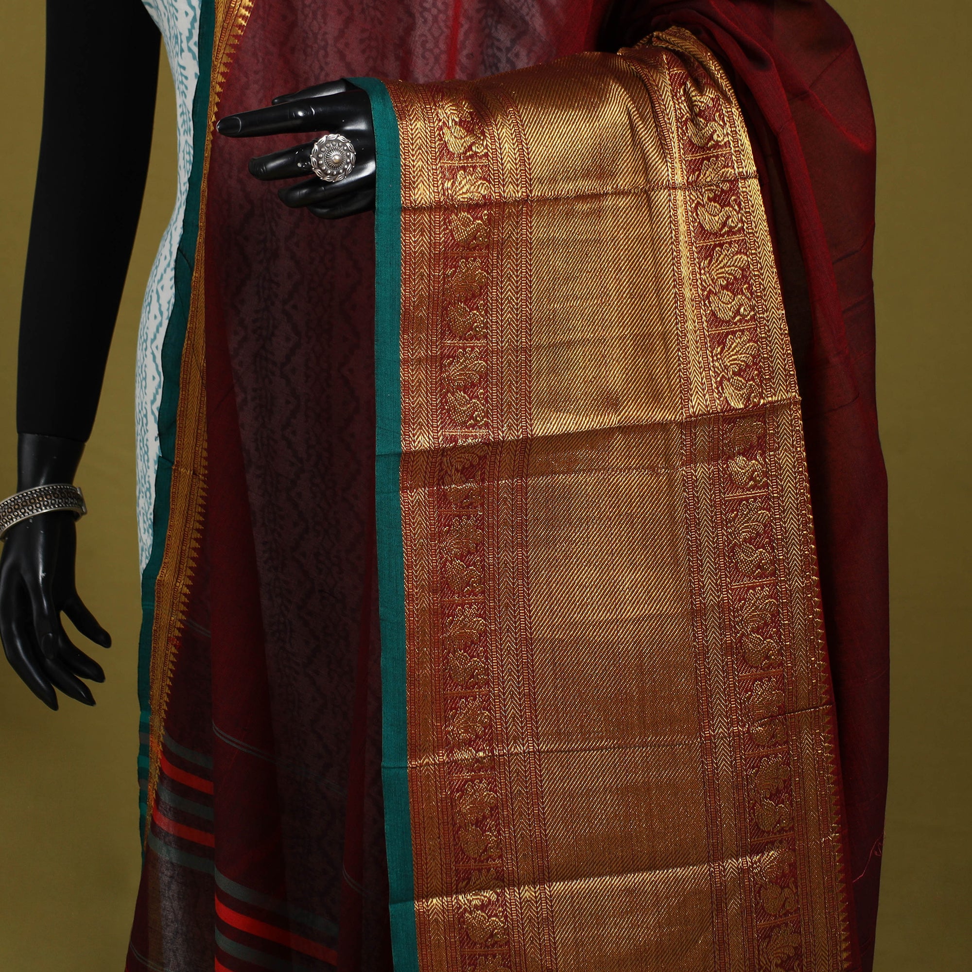 Maroon - Dharwad Cotton Dupatta with Zari Border 29