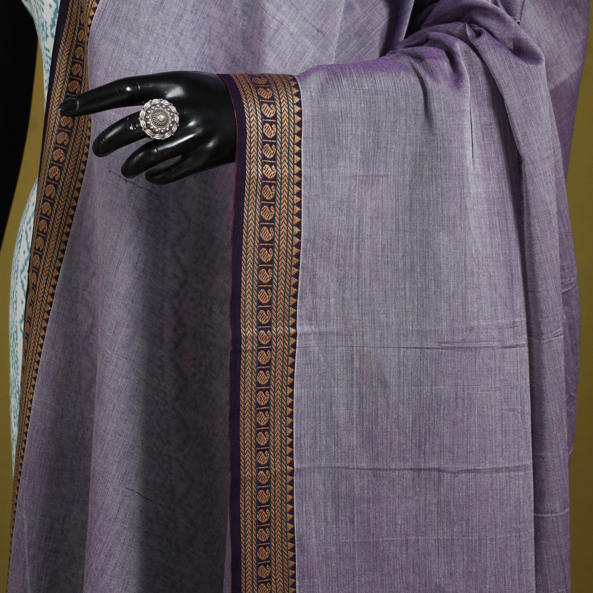 Purple - Dharwad Cotton Dupatta with Zari Border 37