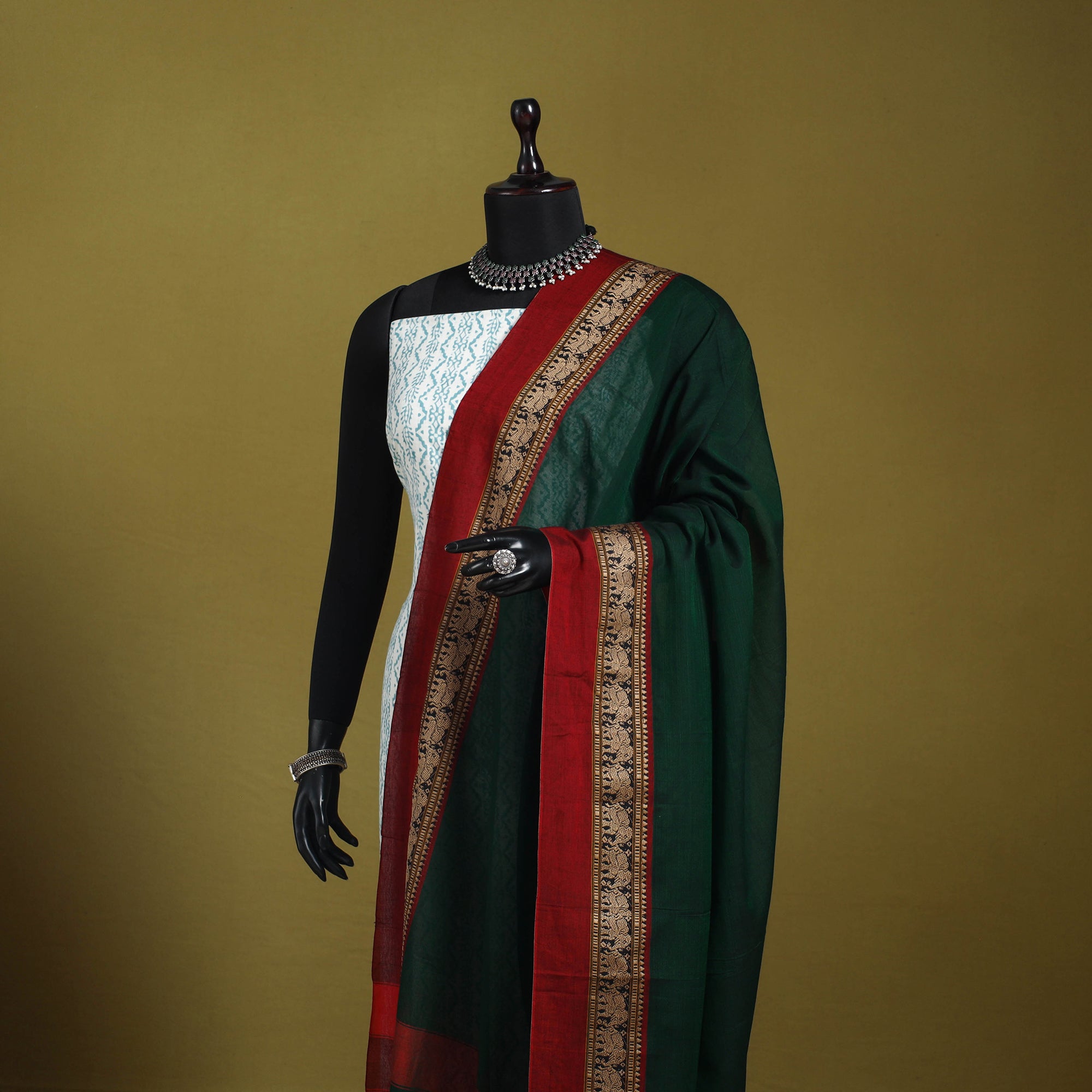 • Green - dharwad cotton dupatta with zari border 59